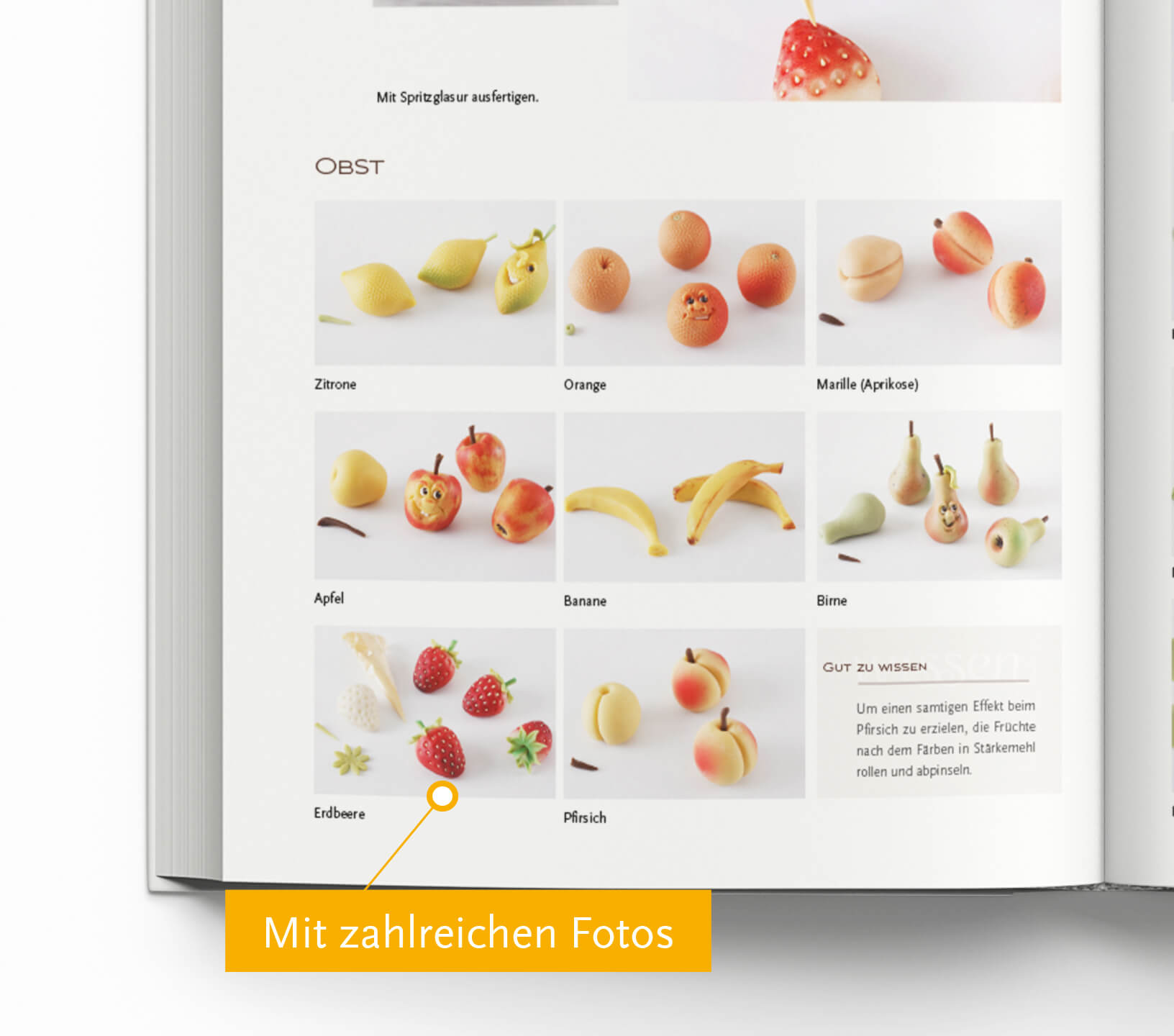 Zahlreiche Fotos veranschaulichen Schritt für Schritt die Herstellung diverser Dekorelemente, sei es eine Masche aus Seidenzucker, eine Blüte aus Marzipan oder zarte Schwünge aus Schokolade. Und wo Fotos alleine nicht reichen, verhelfen Filme zu mehr Klarheit.