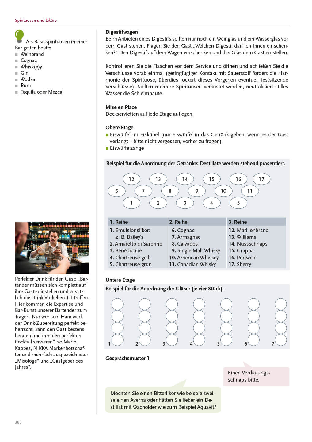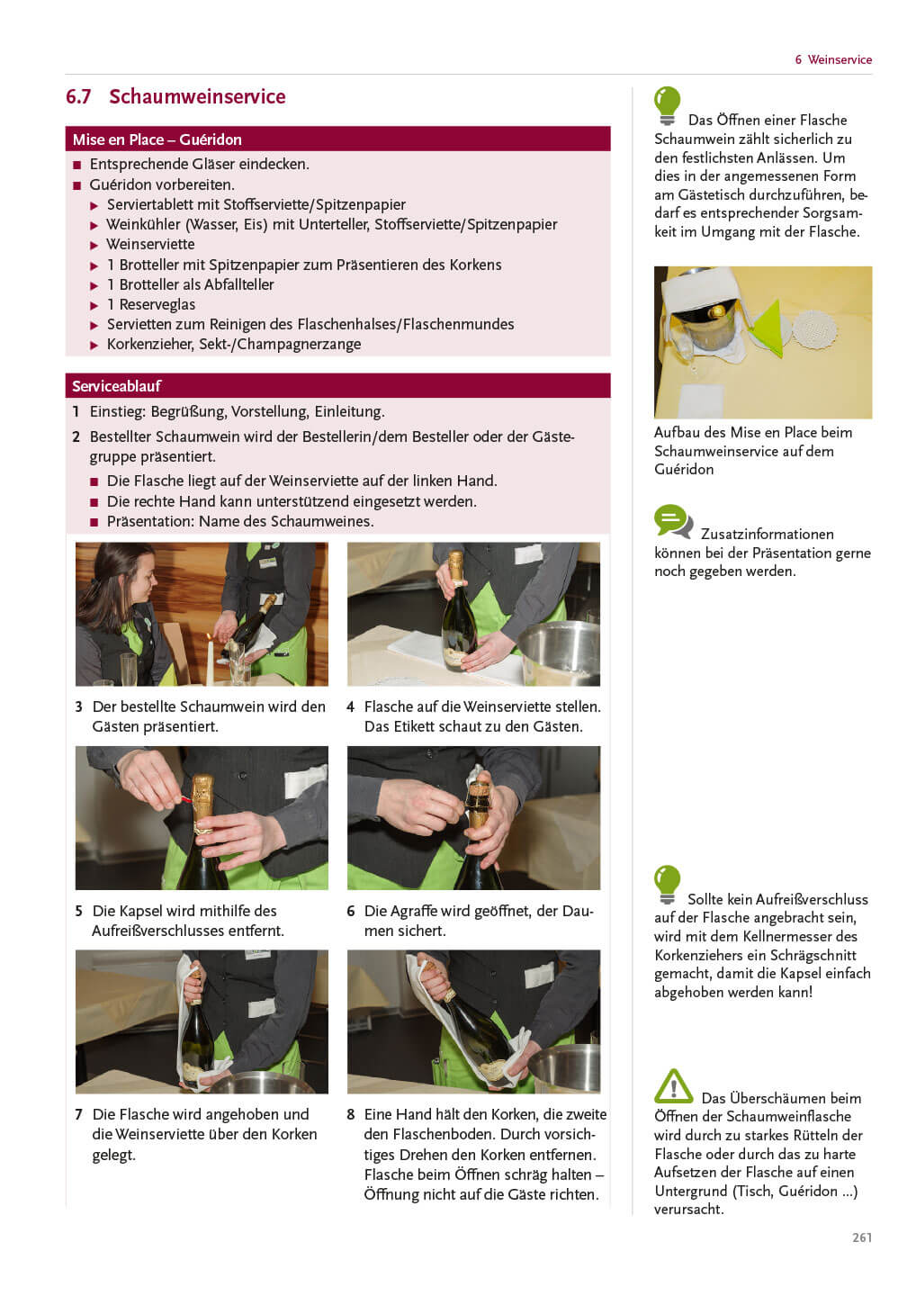 - Der Wein und sein Service (Die Sommelière/der Sommelier, Kellermanagement, Organisation einer Weindegustation, Kalkulation von Preisen, Präsentation und Verkauf von Wein, Weinservice)