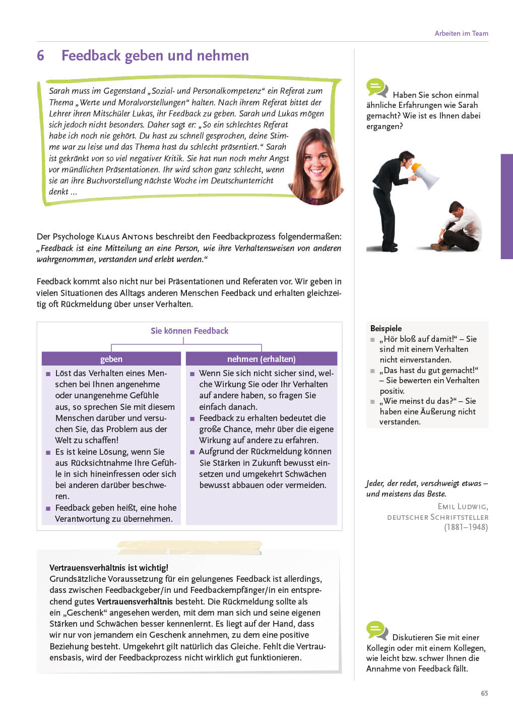 Team-, Konflikt- und Kommunikationsfähigkeit sind im Berufsleben als Schlüsselqualifikationen heutzutage mehr gefordert denn je. Dieses Buch bietet den Schülerinnen und Schülern Methoden und Techniken für den Erwerb dieser sozialen und personalen Kompetenzen.