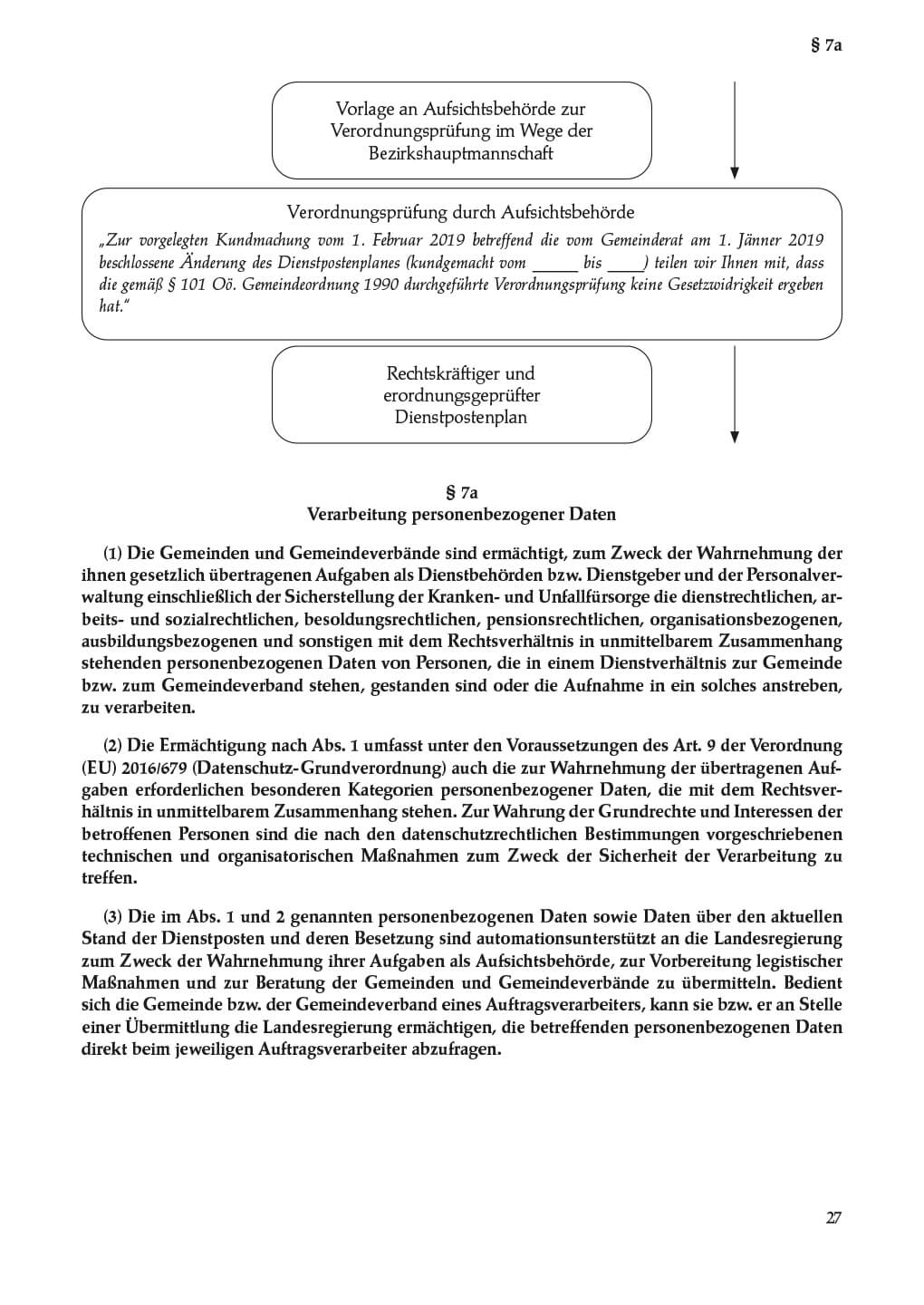 - Anlagenverzeichnis Verordnungen: Oö. Gemeinde-Dienstpostenplanverordnung 2019, Oö. Bediensteten-Schutzverordnung 2017 etc.