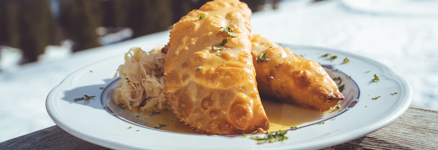 Was für ein Hochgefühl, die noch frischen, knusprigen Fleischkrapfen in der Sonne zu verputzen, bevor es zurück ins Tal geht. Ja, so lässt’s sich leben! Mit sportlichen Menschen an der frischen Luft, die gerne auch mal gemeinsam gutes Essen genießen. Die Fleischkrapfen sind aber auch für zu Hause ein Gedicht.