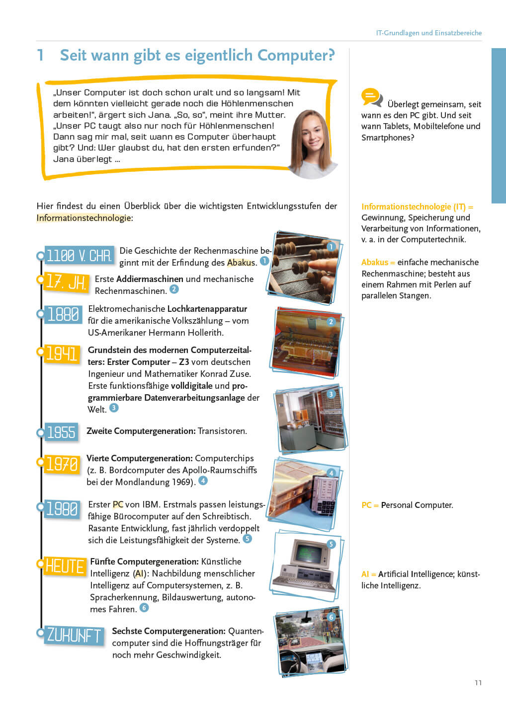 - IT – eine spannende Branche (IT-Grundlagen und Einsatzbereiche, Hardware, Software-Grundlagen, Bedeutung der IT-Sicherheit, Vernetzes Arbeiten, Informationstechnologie betrifft uns alle)