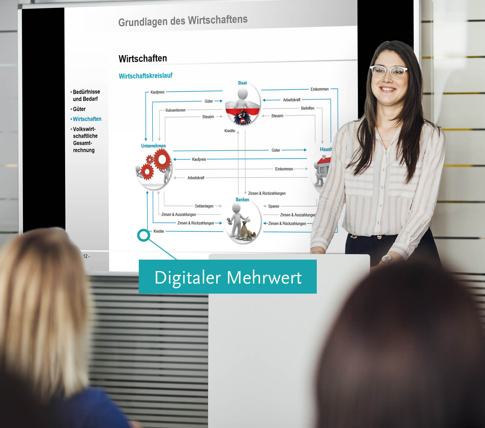 Unterstützt Sie mit PPT-Präsentationen, Videos, interaktiven Übungen und Zusatzinfos zu allen Kapiteln.