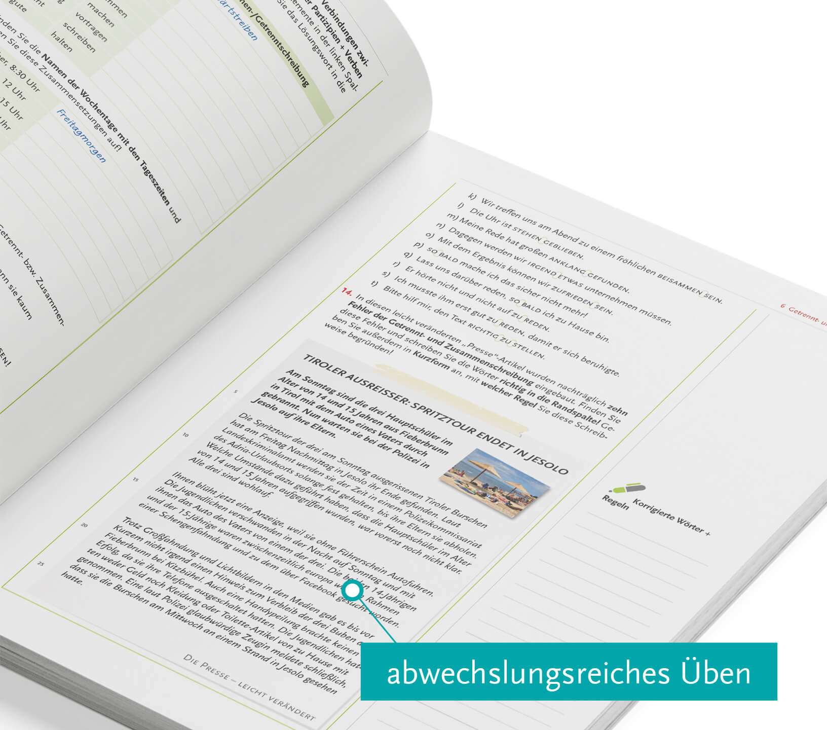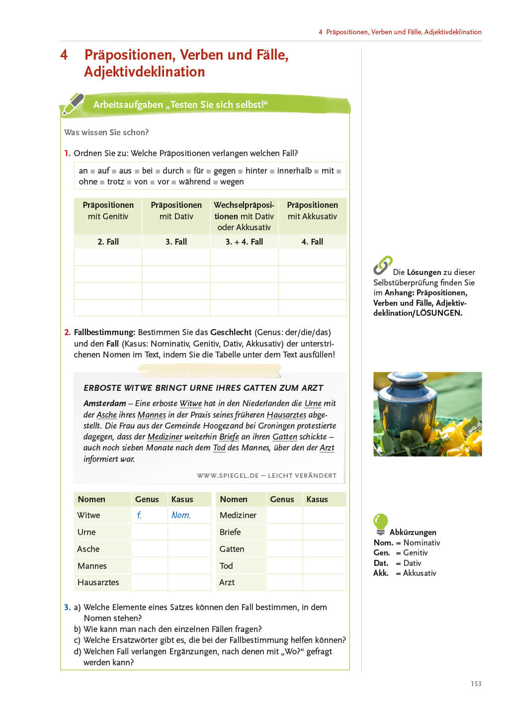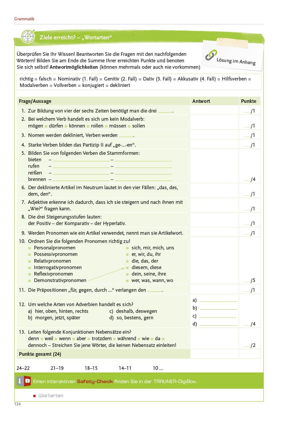 Mit speziellen Aufgaben am Beginn und Ende jedes Kapitels (inkl. Lösungen) können die Schüler/innen den eigenen Wissensstand kontrollieren.