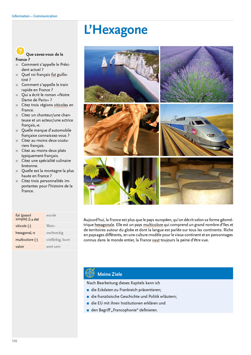 France, Europe & Cie (GERS B1) behandelt aktuelle Themen der Berufswelt und des Alltagslebens in unterschiedlichen Handlungssituationen. Damit deckt es die wichtigsten Themenbereiche für die Reife- und Diplomprüfung ab.