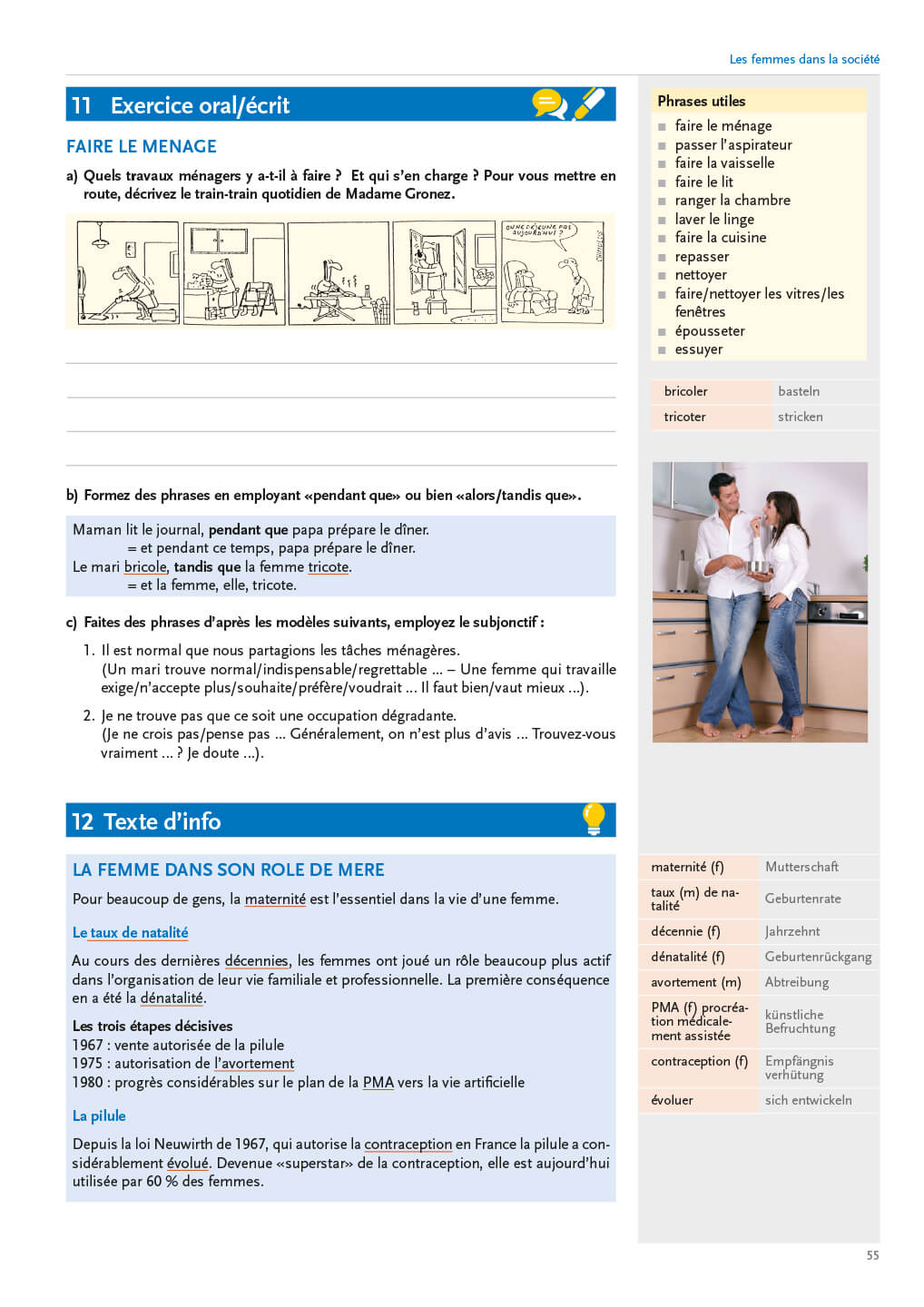 - Die "Phrases utiles" in der Randspalte helfen bei der Erarbeitung der einzelnen Übungen. Vertiefende Phrasen sind im letzten Kapitel "Le francais en pratique" zusammengefasst.