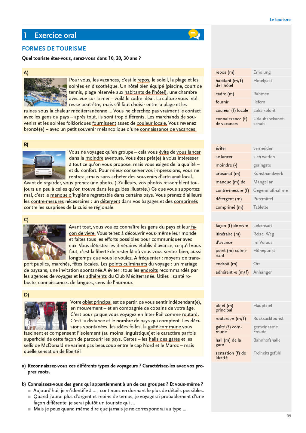 - Die einzelnen Kapitel sind unterteilt in: texte d'info, exercice oral, exercice écrit und exercice d'écoute.