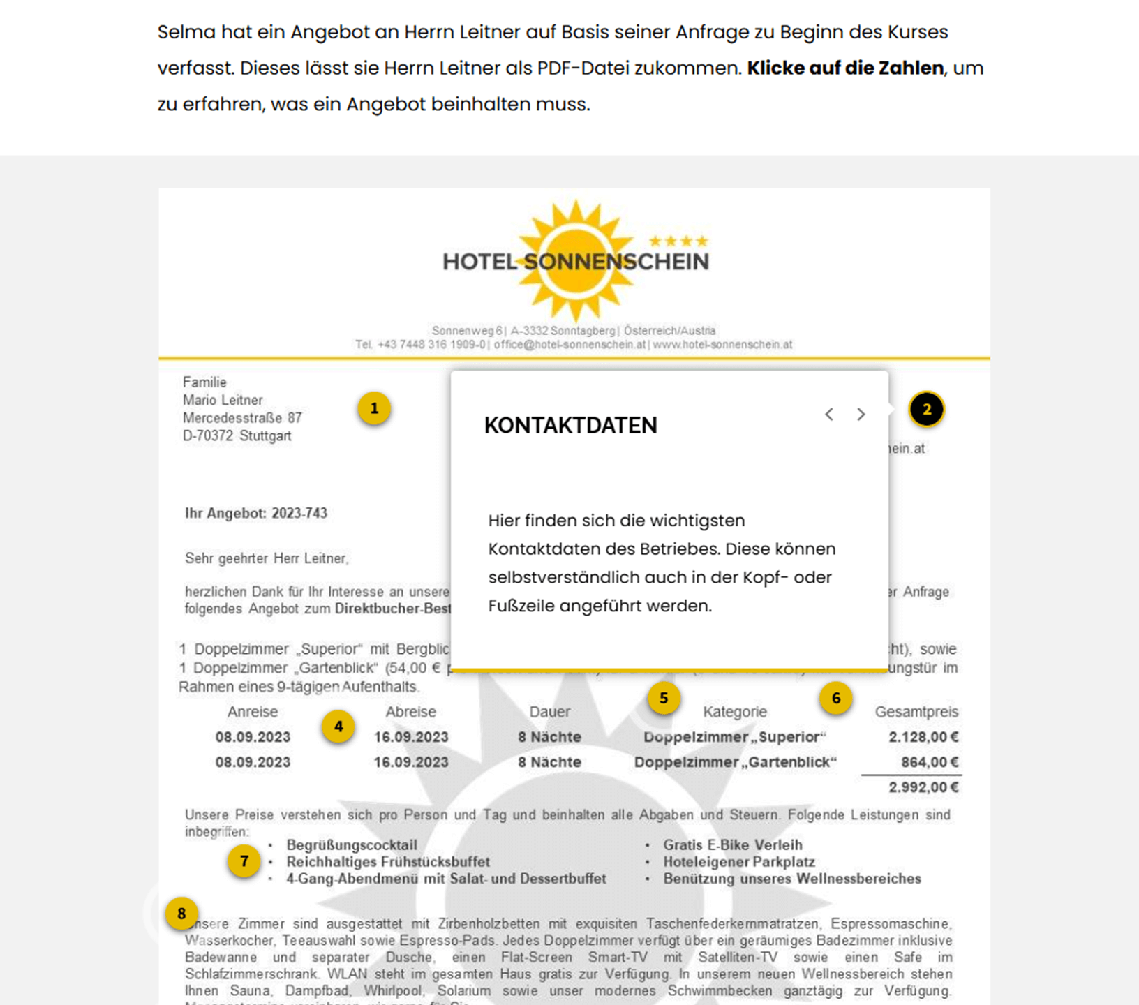 Gästebedürfnisse, Gästekontakt, Zimmerbuchung, Zimmerwahl, Package, Rezeption, Gästebetreuung, Begrüßung, Zimmeranfrage, Angebot, freibleibendes Angebot, verbindliches Angebot, Optionsdatum, Reservierung, Reservierungsbestätigung, Anzahlung, Anreise, Kennzahlen, Zimmernacht, Personennacht, Auslastung, Vollbelegstage, Logisumsatz, RevPOR, RevPAR, ADR, Kalkulation, Divisionskalkulation, Zimmerkalkulation mit Zu- und Abschlägen, Selbstkosten, Ortstaxe, Bettenabgabepreis, Nettoverkaufspreis, Doppelzimmerabschlag, Einzelzimmerzuschlag, gewünschter Gewinn, Kennzahlen, Zusatzverkäufe, Umsatzsteigerung