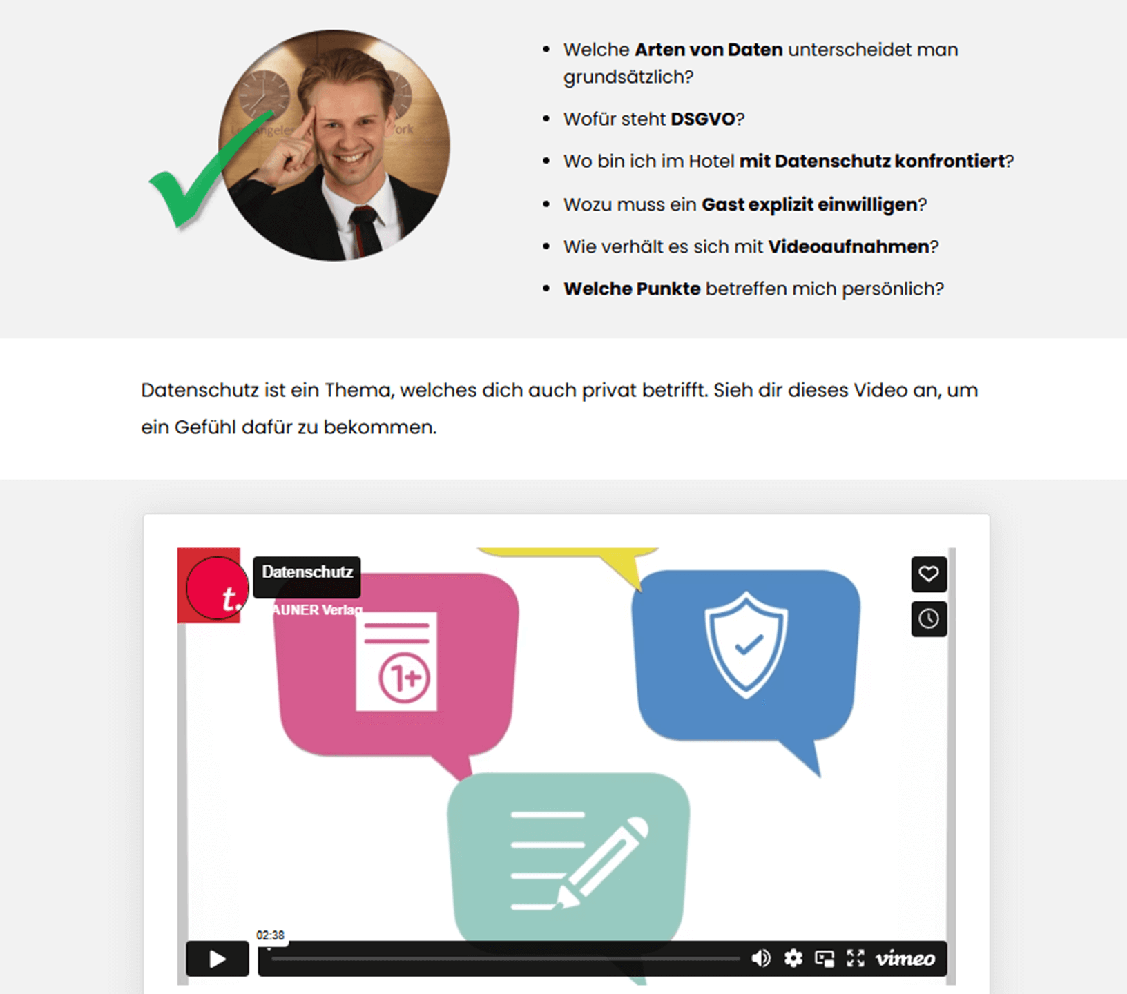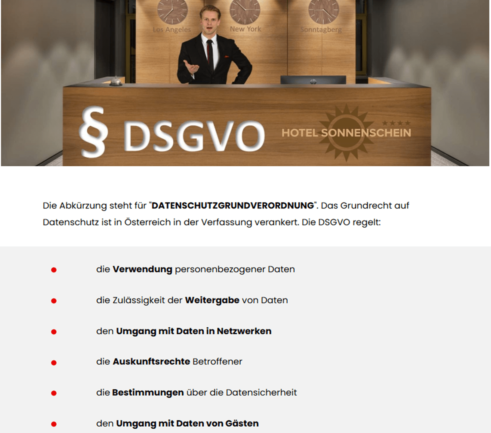 Sie möchten in der Hotellerie durchstarten und Ihre Gäste optimal betreuen? Sie arbeiten bereits an der Rezeption und wollen Ihr Wissen erweitern? Sie interessieren sich für eine Tätigkeit am Empfang und wünschen sich einen umfassenden Einblick in die Themen Datensicherheit & Datenschutz? Dann ist dieser Kurs genau das Richtige für Sie!