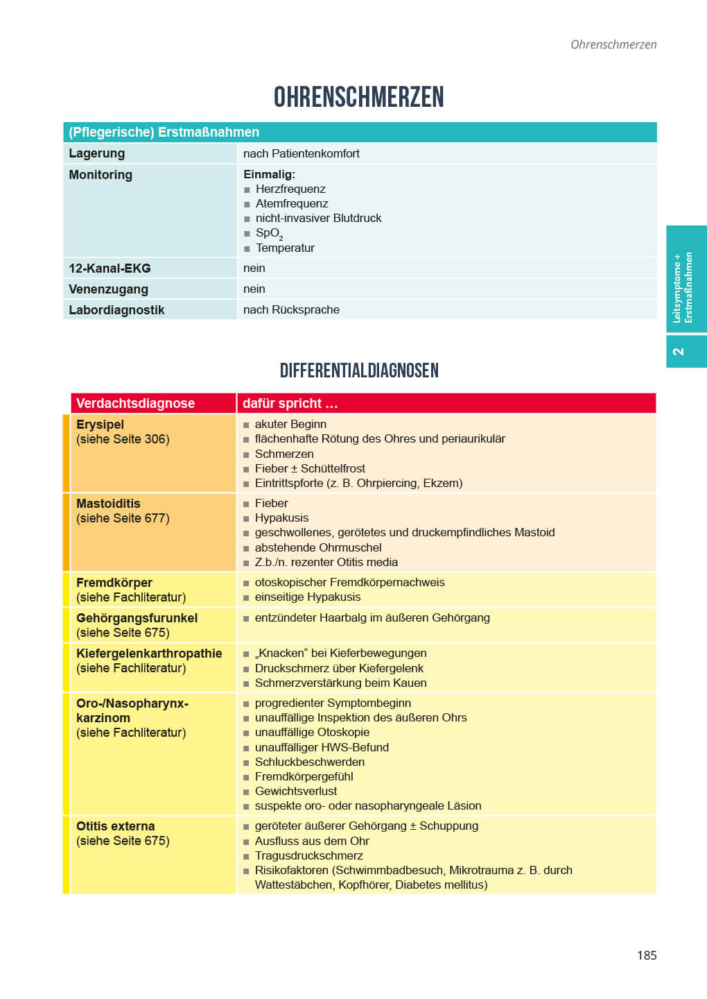 - Teil 2 Leitsymptome und pflegerische Erstmaßnahmen (Erarbeitung von Verdachts- und Differentialdiagnosen)