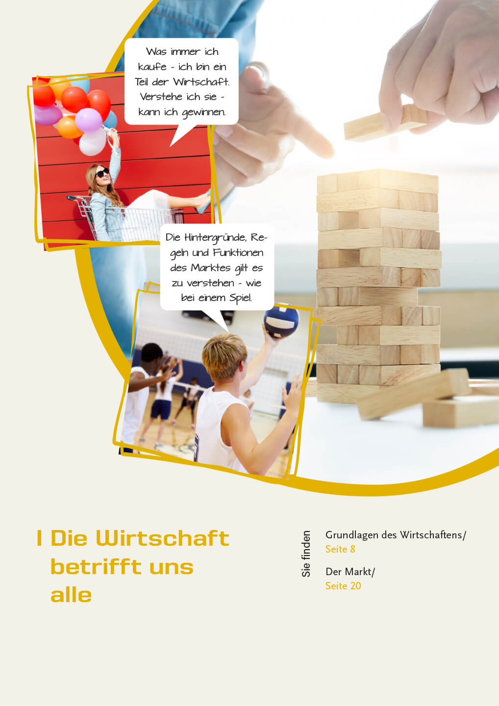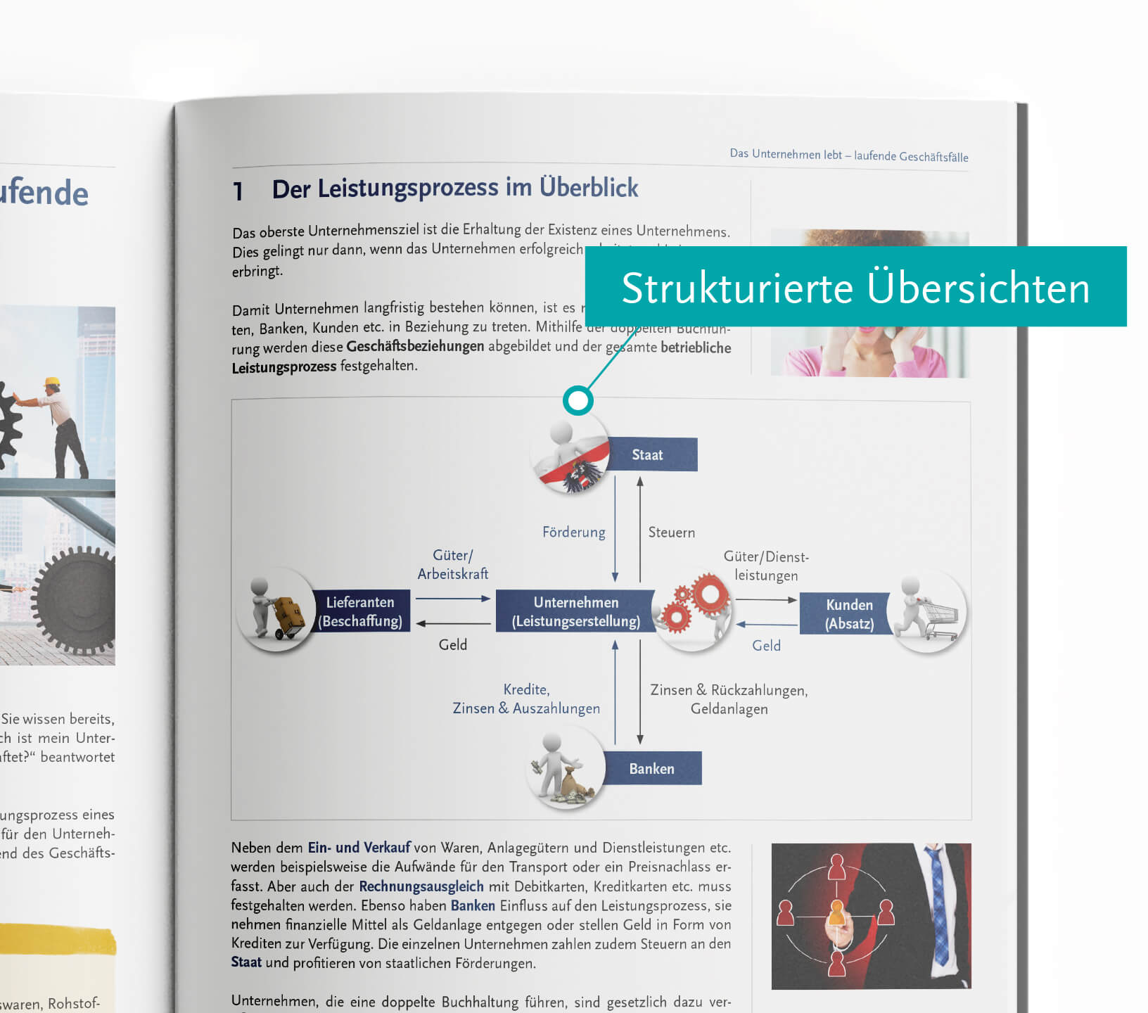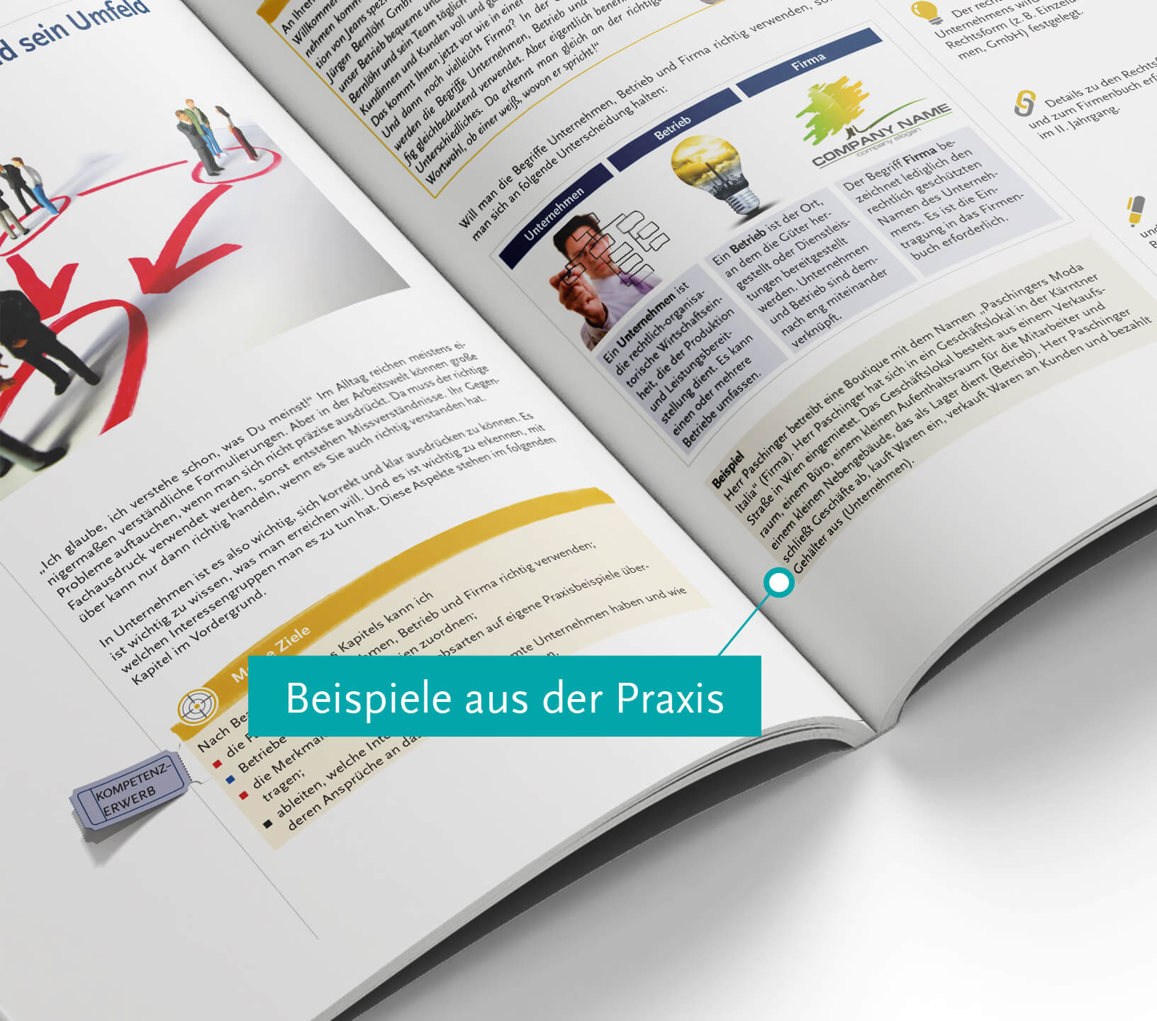 Aktiv werden die Schülerinnen und Schüler auf ihre Rolle als Arbeitnehmer/in bzw. Unternehmer/in und als Konsument/in vorbereitet. Neben prägnanten Sachtexten und vielen Übersichten, die dem Unterricht Struktur geben und systematisches Lernen ermöglichen, werden die Schülerinnen und Schüler mit Echtsituationen konfrontiert. Dabei werden sie sich einzeln und im Team an Themen- und Aufgabenstellungen erproben. Schrittweise entwickeln die Lernenden Kompetenzen, die sie befähigen, betriebswirtschaftliche Probleme zu erkennen, zu analysieren und zu lösen, nicht nur in der fiktiven Betriebswelt der Schule, sondern auch in der konkreten betrieblichen Wirklichkeit.