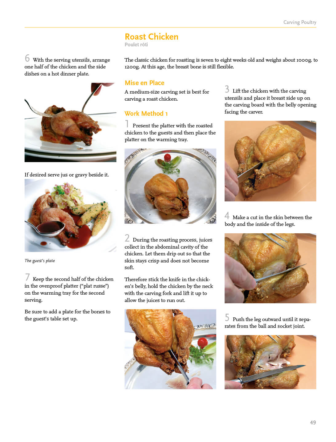 Carving, filleting, flambéing and marinating are superior skills required of all accomplished service employees for they distinguish them as masters in their profession. Furthermore, the perfectly performed service of cheese or coffee, where guests can at the same time gain knowledgeable advice, speaks to the quality of the employee as well as to the establishment.