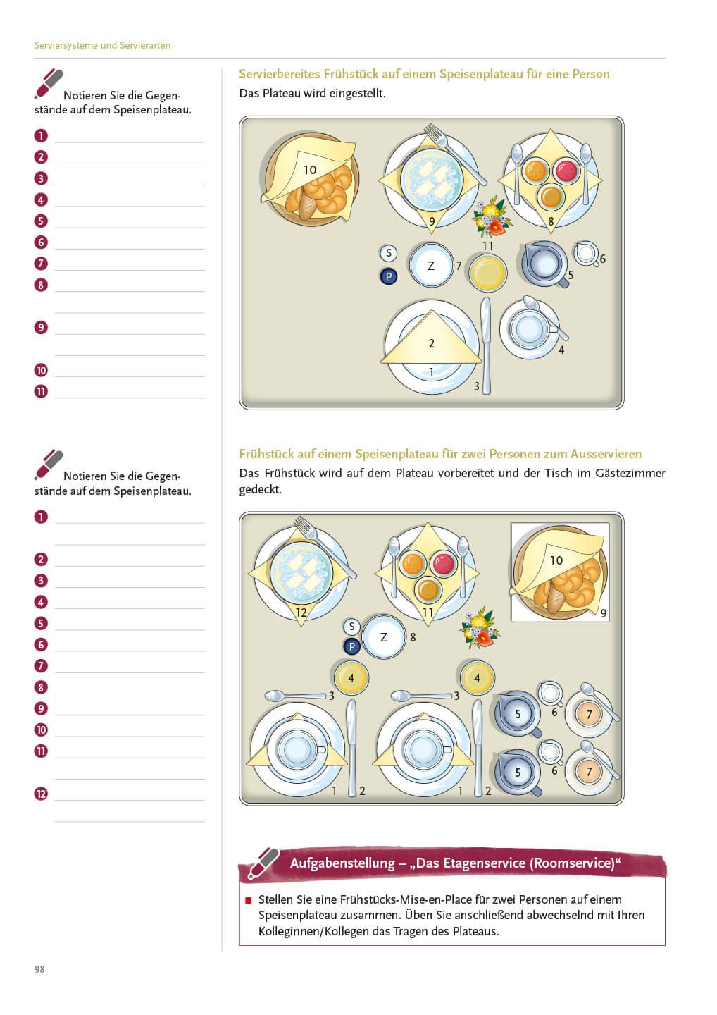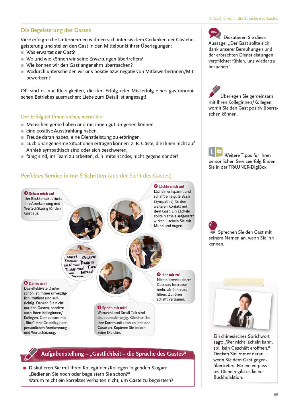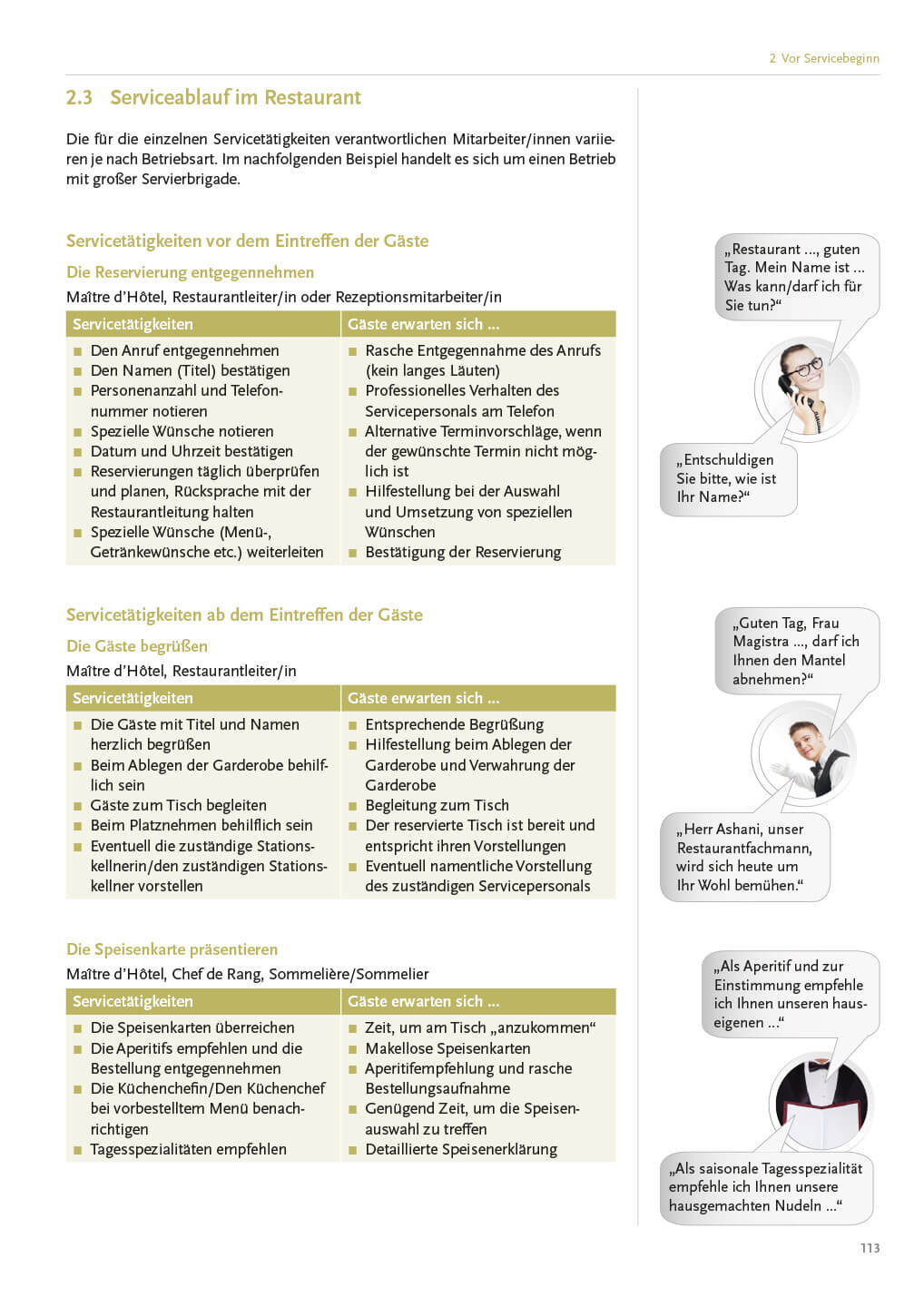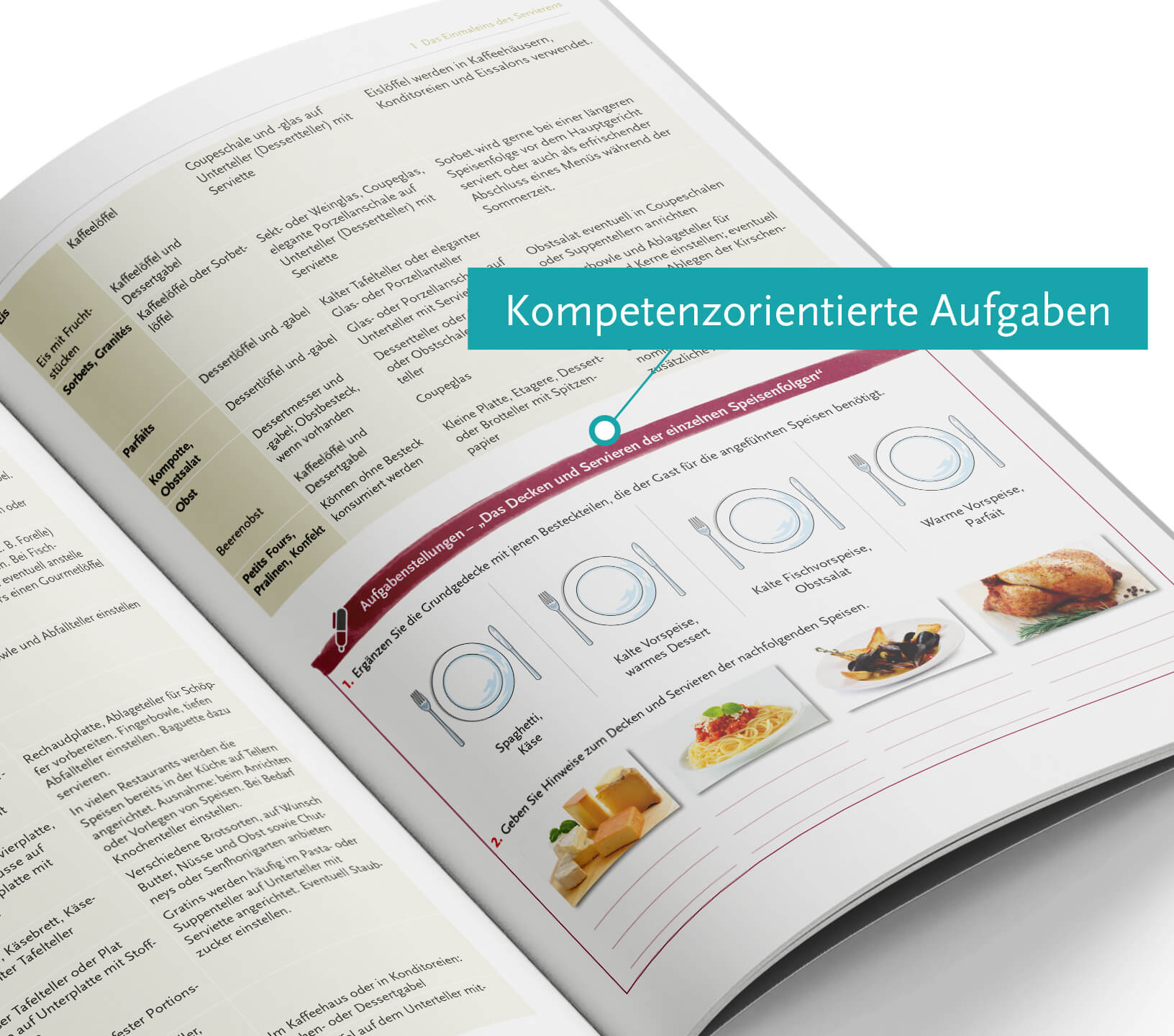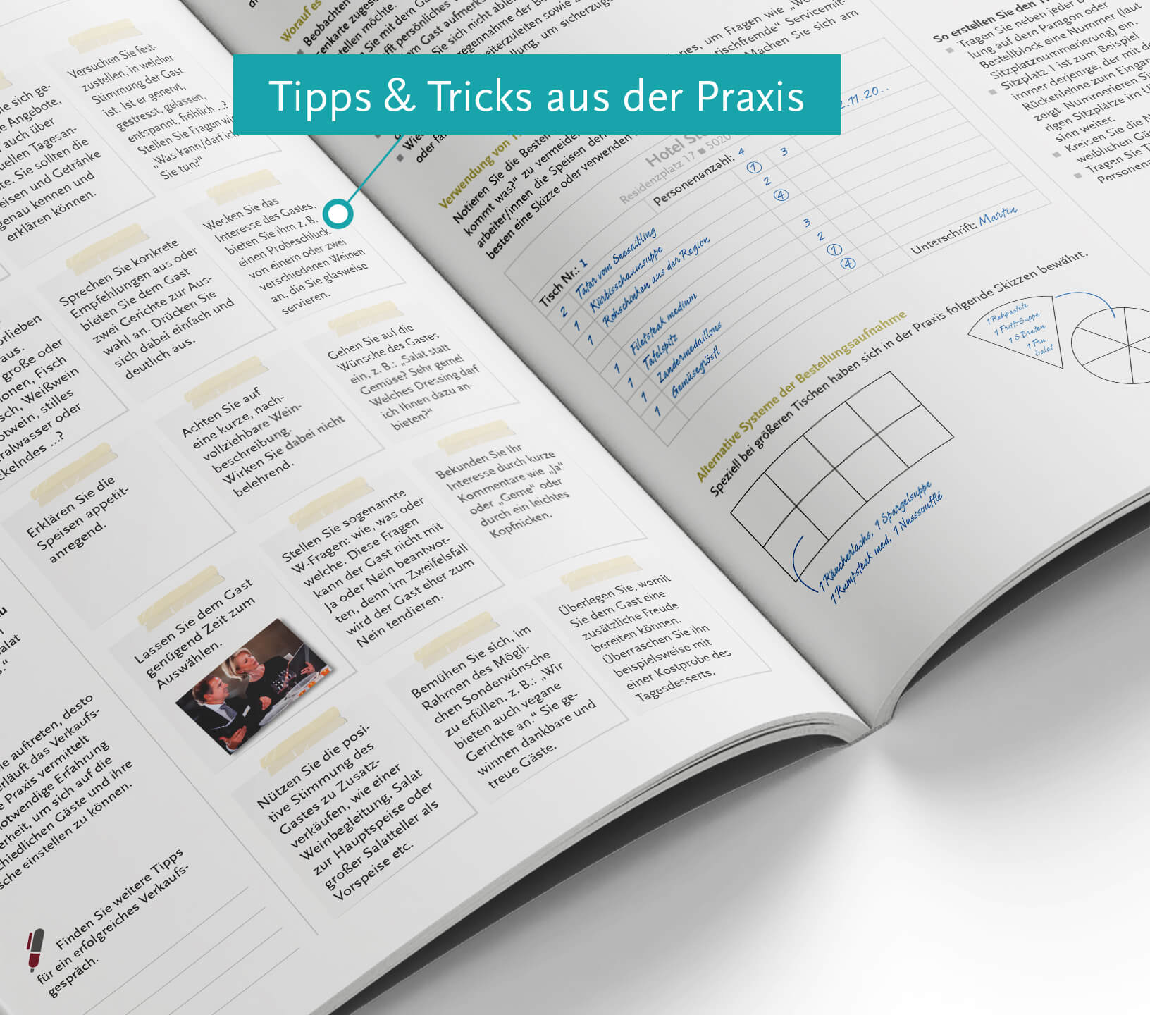 Ein ansprechendes Berufsoutfit, ein sorgfältig gedeckter Tisch sowie ein korrektes Speisen- und Getränkeservice zählen zu den Grundlagen einer Restaurantfachfrau/eines Restaurantfachmannes. Alles, was darüber hinausgeht – die sogenannte Liebe zum Detail –, macht das Service perfekt und trägt zum Erfolg der Servicemitarbeiter/innen bei.