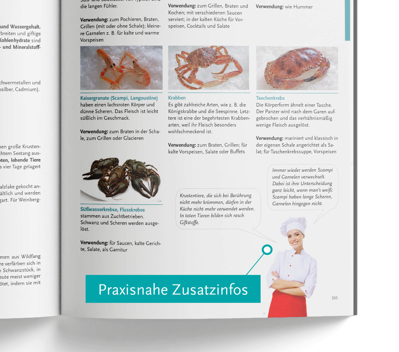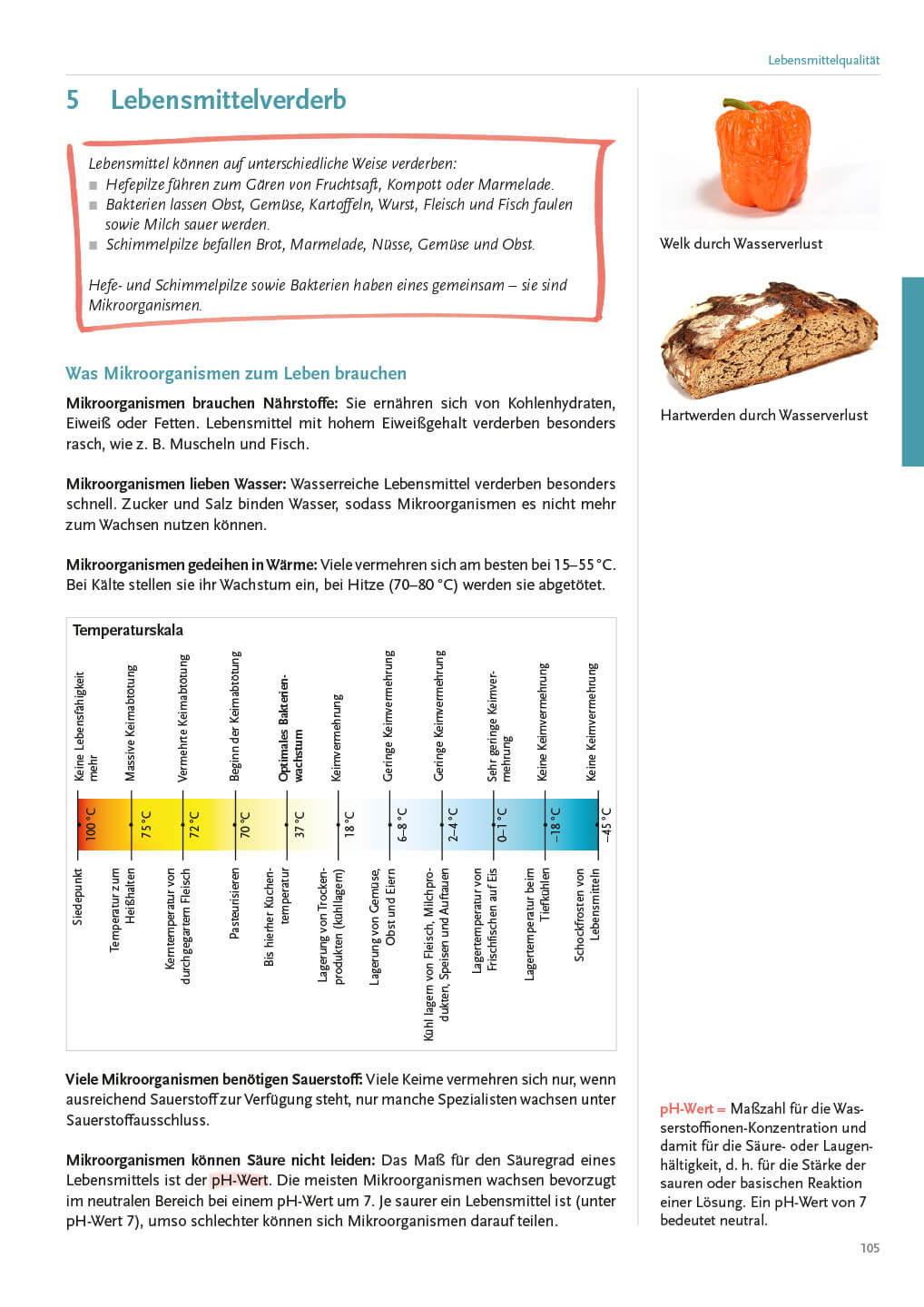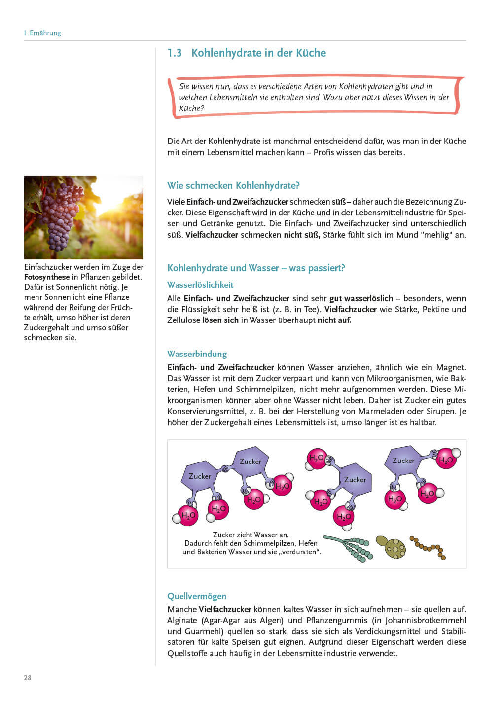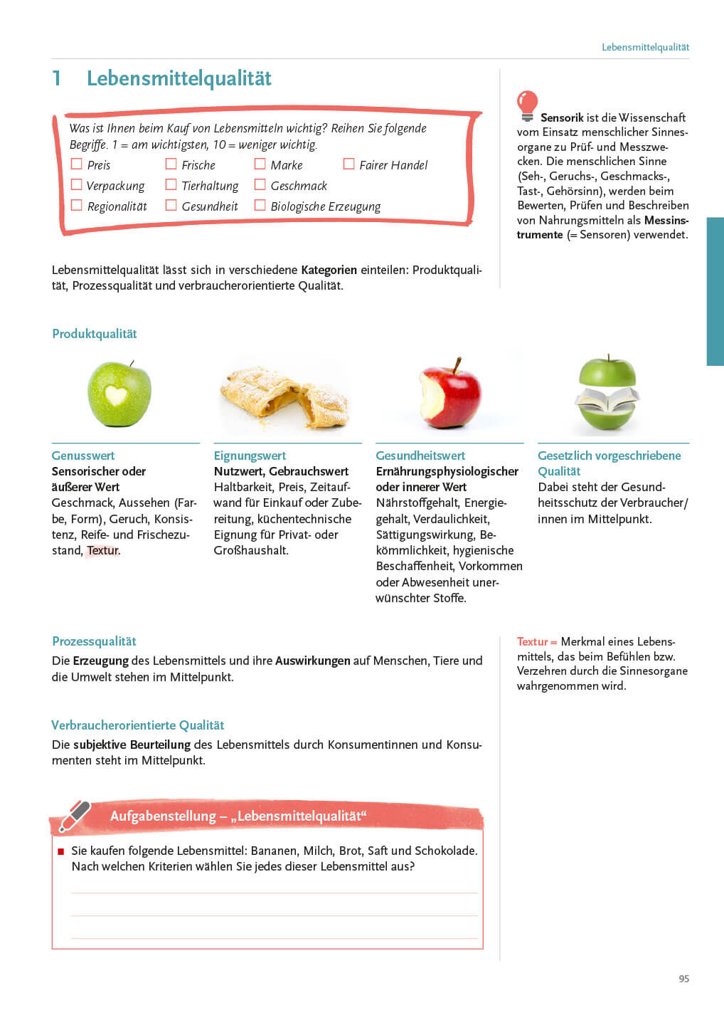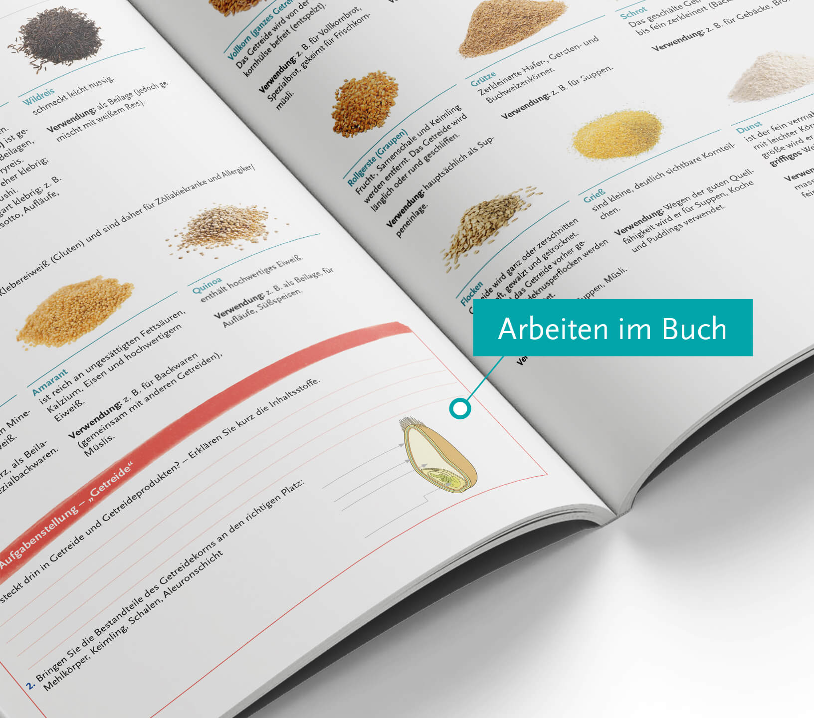 Im Kapitel „Lebensmittel“ geht es darum, den Schülerinnen und Schülern vor Augen zu führen, mit welchem Wert sie vom Einkauf über die Lagerung bis hin zur Vorbereitung und Verarbeitung tagtäglich arbeiten: Woran erkenne ich, ob die Ware frisch ist? Wie muss sie gelagert werden, damit sie nicht an Qualität einbüßt? Was muss ich bei der Vorbereitung beachten? All diese Fragen werden abwechslungsreich und spannend beantwortet.