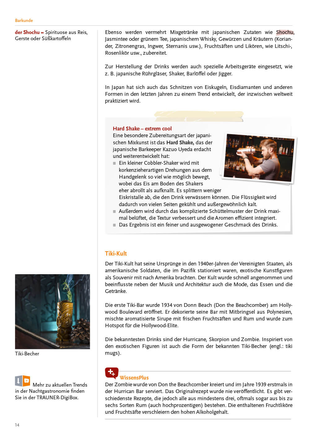 Woher kommt der Begriff Bar? Welche neuen Trends bestimmen die Barszene? Wie bereitet man einen Mojito Mocktail zu? Die Anforderungen an das Barpersonal sind zunehmend gestiegen, da für die meisten Gäste der Besuch einer Bar viel mehr ist als nur der Konsum eines Getränks. Sie treffen Freunde, lernen neue Menschen kennen oder wollen sich einfach nur unterhalten. In zahlreichen professionell geführten Bars weltweit bieten Barkeeper/innen ihren Gästen eine besondere Atmosphäre, die dazu beiträgt, dass der Barbesuch zu einem unvergesslichen Erlebnis wird.
