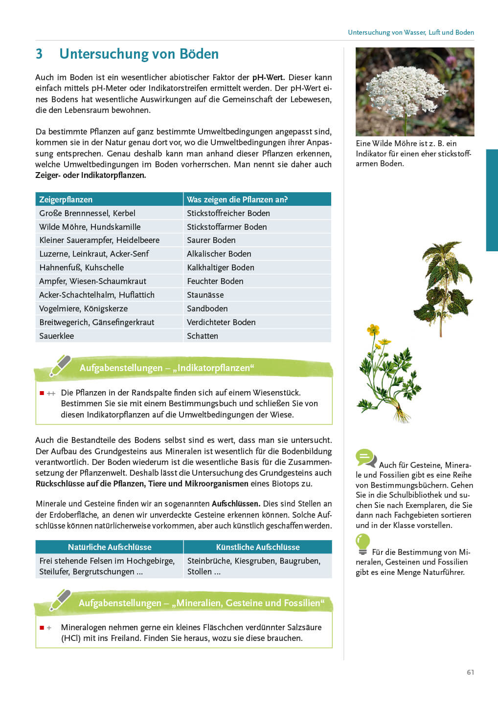 Wie ist ein Ökosystem aufgebaut? Welche Nahrungsbeziehungen finden sich in der Natur? Welche besonderen physikalischen Eigenschaften besitzt Wasser? Laufen die Prozesse der Stoffe in der Natur im Kreislauf? Woher kommt der elektrische Strom? Was sind erneuerbare Energieträger? Was versteht man unter nachhaltiger Produktion?