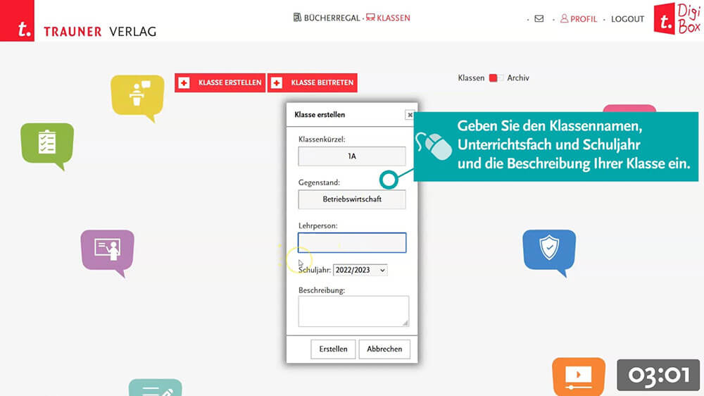Kurze Tutorial-Videos unterstützen Sie, schnell und einfach die DigiBox und das digitale Klassenzimmer kennenzulernen: von der Registrierung bis zu den automatischen Auswertungen der Übungen.