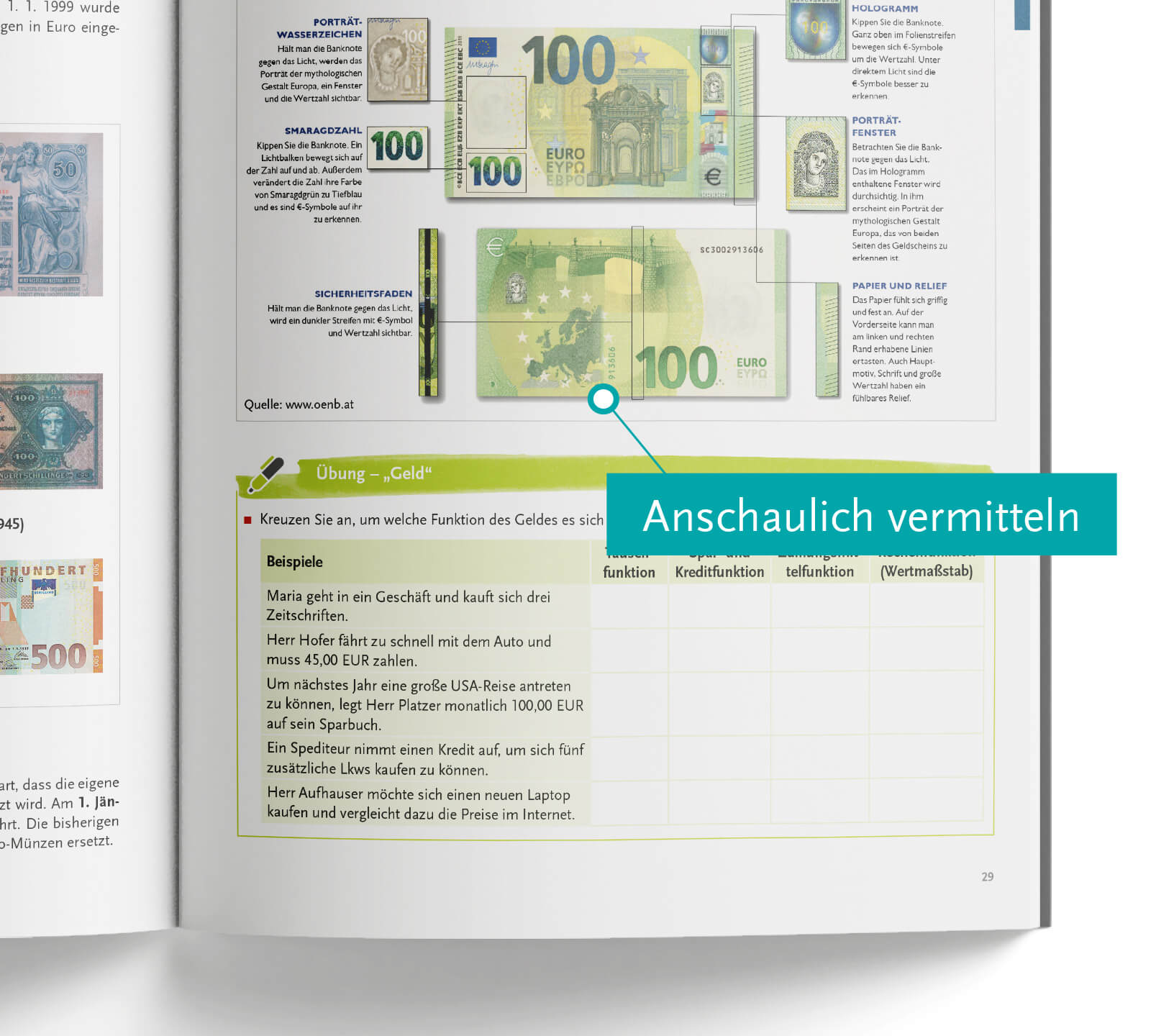 Verständlich formulierte Sachtexte, klare Übersichten und Bilder motivieren und geben dem Unterricht Struktur. Konkrete Beispiele und praxisbezogene Übungen fördern das wirtschaftliche Denken und Handeln der Schüler/innen.