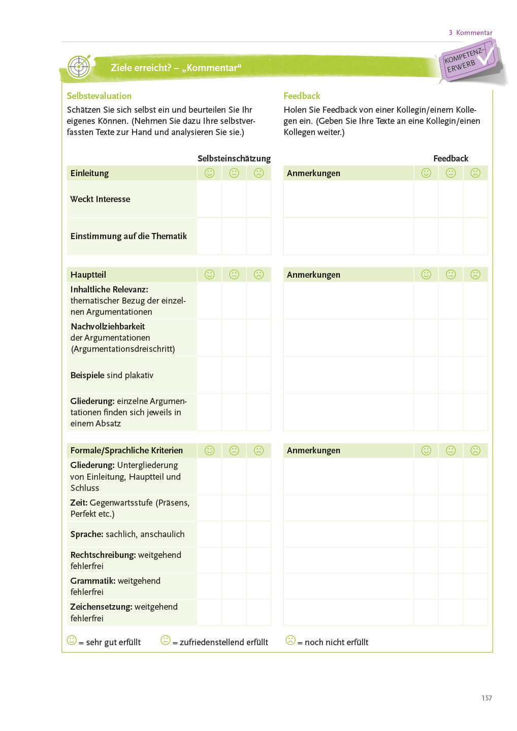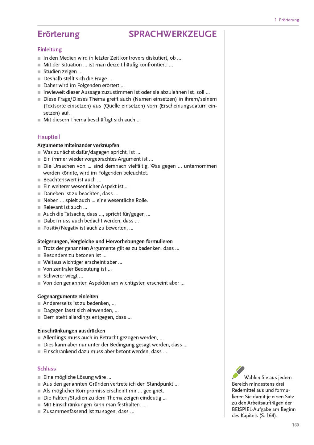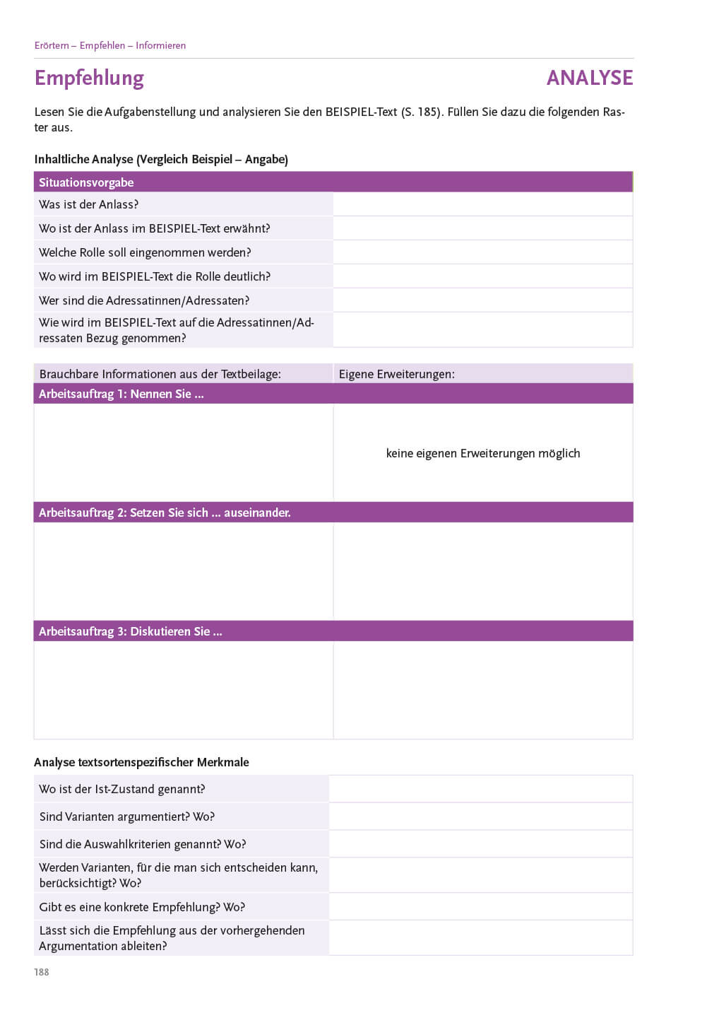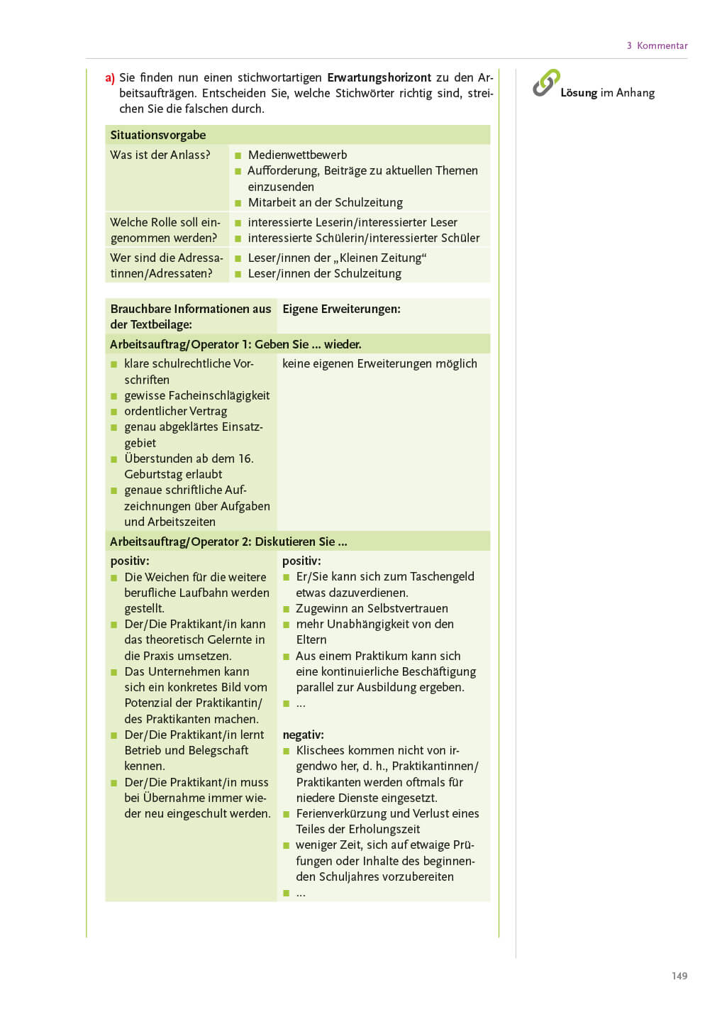 Für die Entwicklung des textsortengebundenen Schreibens wird auf BEISPIEL- und WERKZEUG-Seiten das nötige theoretische Wissen kompakt vermittelt. Die darauf folgenden Arbeitsaufgaben ermöglichen es den Schülerinnen und Schülern, anhand zuvor (kennen-)gelernter Kriterien Schritt für Schritt jene Kompetenzen zu entwickeln, die für eine gelungene Textproduktion erforderlich sind.