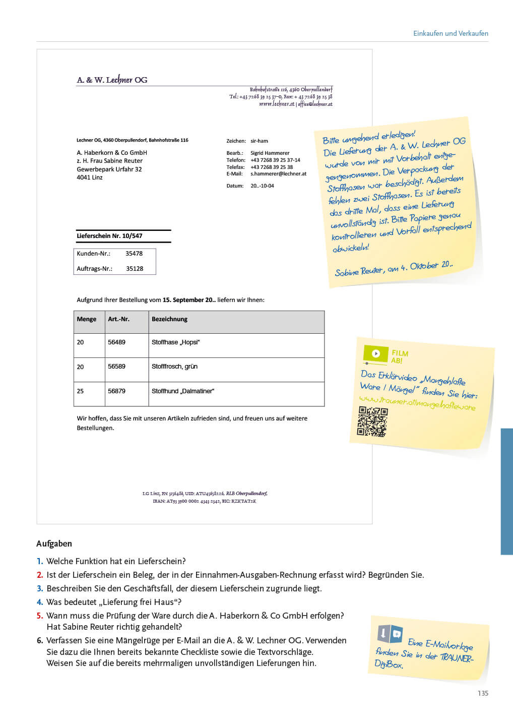 Spannende Fallbeispiele aus dem betrieblichen Alltag: Aufgabenstellungen, Arbeitsanweisungen und Belege sorgen für einen guten Einblick in innerbetriebliche Abläufe und helfen den Schülerinnen und Schülern, wirtschaftliche Zusammenhänge zu erkennen.