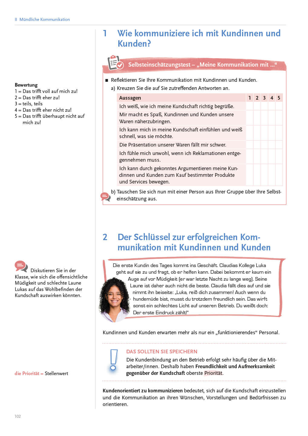 Die beiden Lehrlinge Claudia und Luigi begleiten durch das gesamte Lehrwerk und führen den Schülerinnen und Schülern anhand alltags- und praxisnaher Situationen vor Augen, dass sie täglich in ihrem beruflichen und privaten Umfeld mit dem Thema Kommunikation konfrontiert sind.