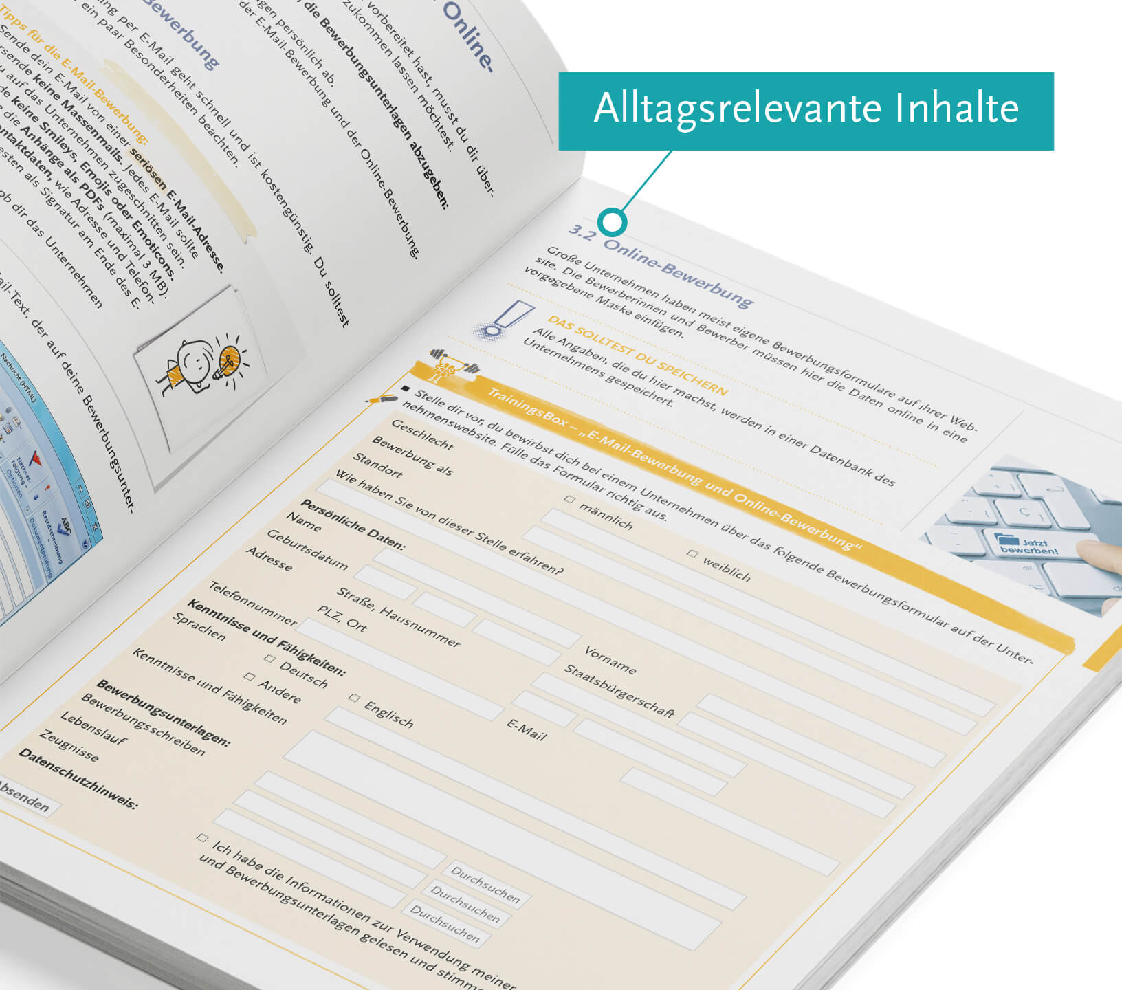 Abwechslungsreiche Übungsformate sichern nicht nur die Aufmerksamkeit der Schüler/innen. Die anschaulichen Übungen mit Bildern und Grafiken ermöglichen auch ein praxisnahes Erlernen der Inhalte.