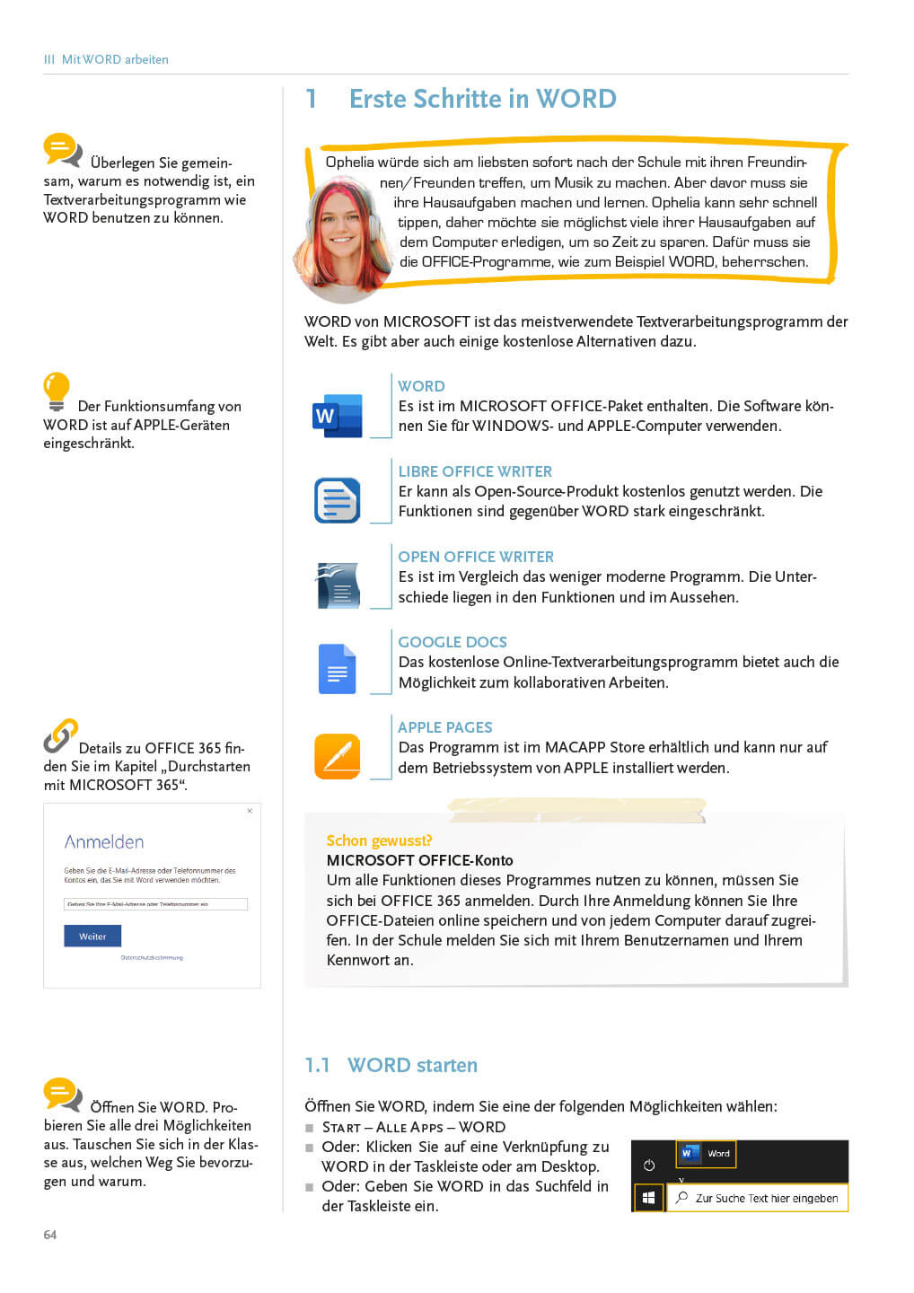 - Mit WORD arbeiten (Tipp für Tipp zum Schreibprofi, WORD kennenlernen, WORD-Dokumente Designen, Mit Tabulator und Tabelle strukturiert arbeiten, Ab die Post – Briefe und E-Mails schreiben)