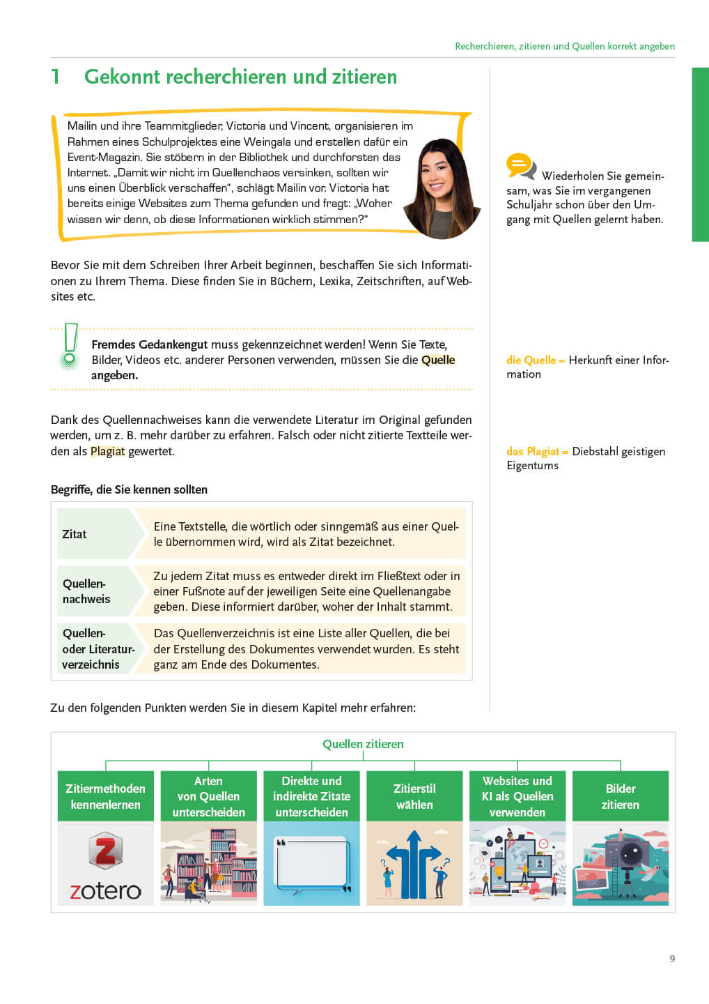 - Recherchieren, zitieren und Quellen korrekt angeben