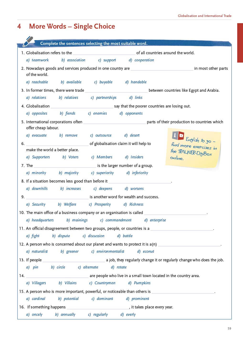 Der Wortschatzübungsband „Wortschatztrainer – Word Power“ dient zusammen mit den Bänden „Topics“, „Forms and Structures“ und „Forms and Structures – Workbook“ der umfassenden Vorbereitung auf die standardisierte Reife- und Diplomprüfung.
