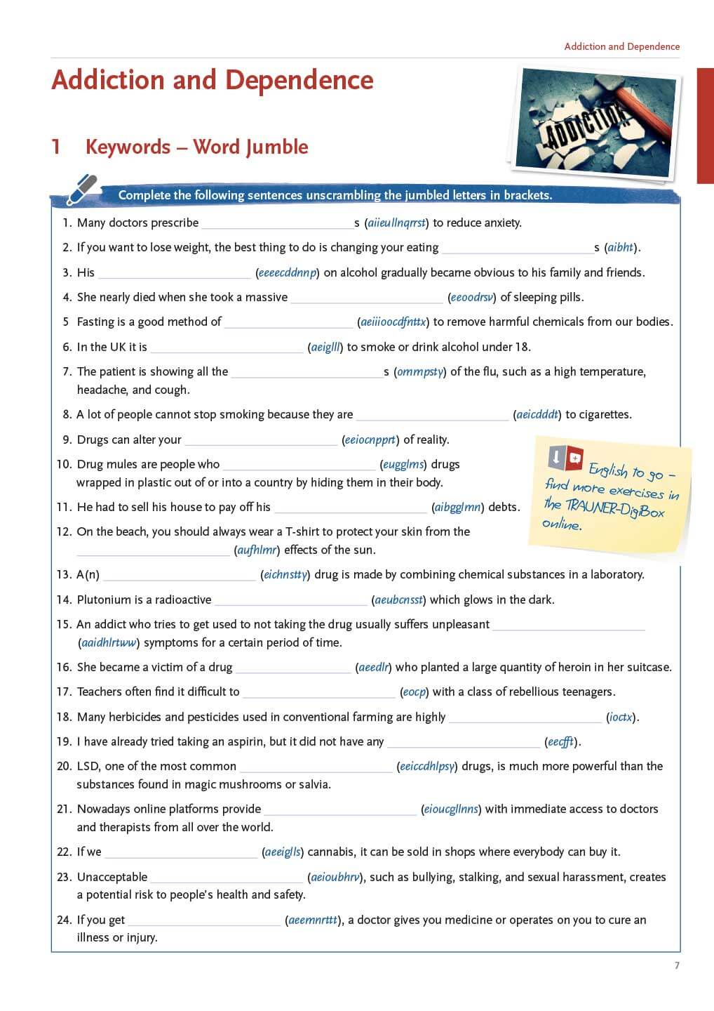 Die Übungen sind wie im Band „Topics“ in Kapitel unterteilt, die in alphabetischer Reihenfolge geordnet sind. Jedes Kapitel besteht aus drei Übungen zu den Keywords sowie drei Übungen zum erweiterten Vokabular des Themas. Nach der Erarbeitung des Themas kann in den verschiedenen Übungen das Gelernte überprüft und gefestigt werden.