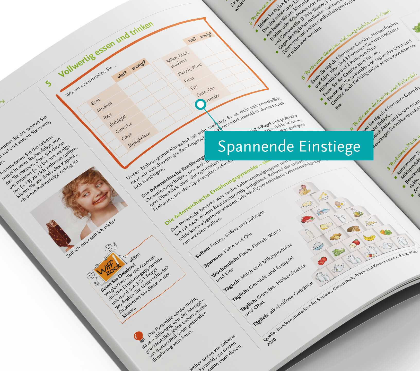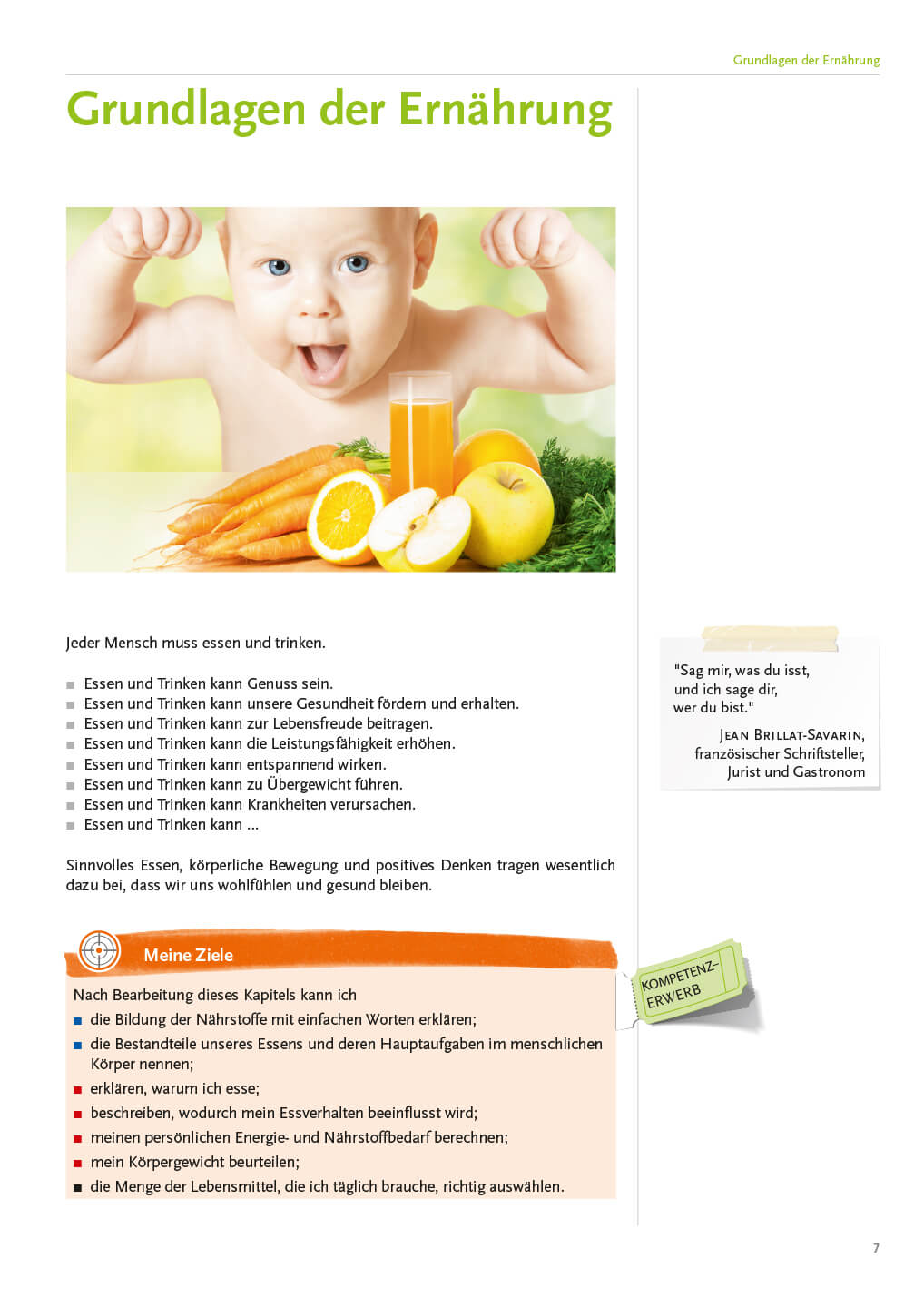 Mit diesem Buch soll der Zusammenhang zwischen Ernährung und Gesundheit bewusst gemacht werden. Das Angebot an Lebensmitteln und Getränken ist riesengroß und die Auswahl der richtigen Produkte schwierig. Ziel ist es, dass die Schüler/innen zu mündigen Konsumentinnen und Konsumenten werden, die Lebensmittelqualität erkennen und Nachhaltigkeit fördern.