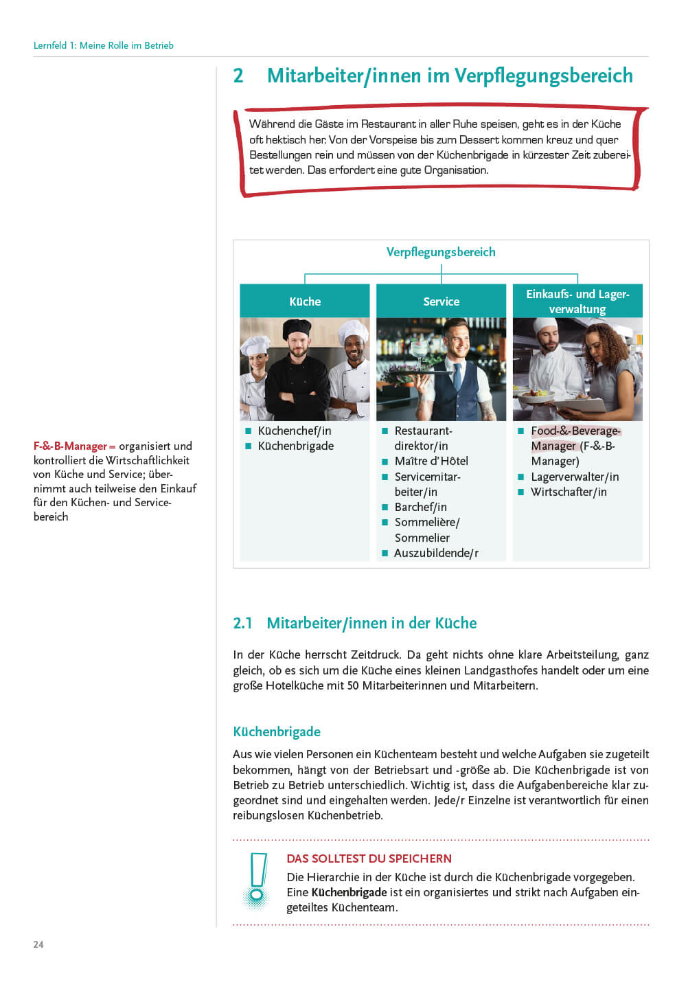 Damit die Karriereleiter jedoch erklommen werden kann, muss alles von der Pike auf gelernt werden. Denn wie will ein Manager standardisierte Konzepte entwickeln, wenn er die Basis nicht begreift? Im vorliegenden Band werden die Azubis in die Welt der Systemgastronomie eingeführt – dazu gehören neben dem eigenen Rollenbild im Betrieb natürlich auch die Warenwirtschaft, das Arbeiten in Küche und Restaurant und die Zahlungsabwicklung.