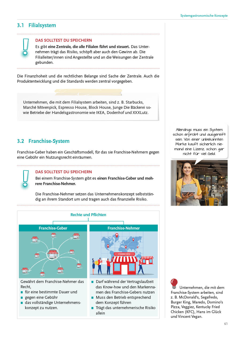 Anknüpfend an die ersten beiden Ausbildungsjahre lernen die Schüler/innen in diesem Buch beispielsweise den Nutzen von Kennzahlen zur Steuerung betrieblicher Vorgänge kennen oder beantworten die Frage, was verschiedene Marketingstrategien bewirken. So erhalten die künftigen Fachleute auf kompakte und leicht verständliche Weise das nötige Know-how, um ein systemgastronomisches Restaurant führen zu können.