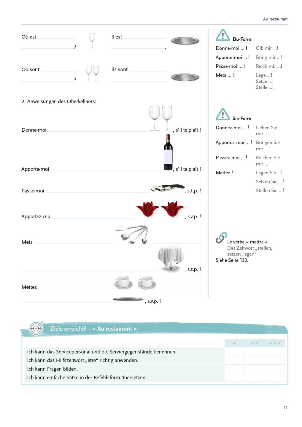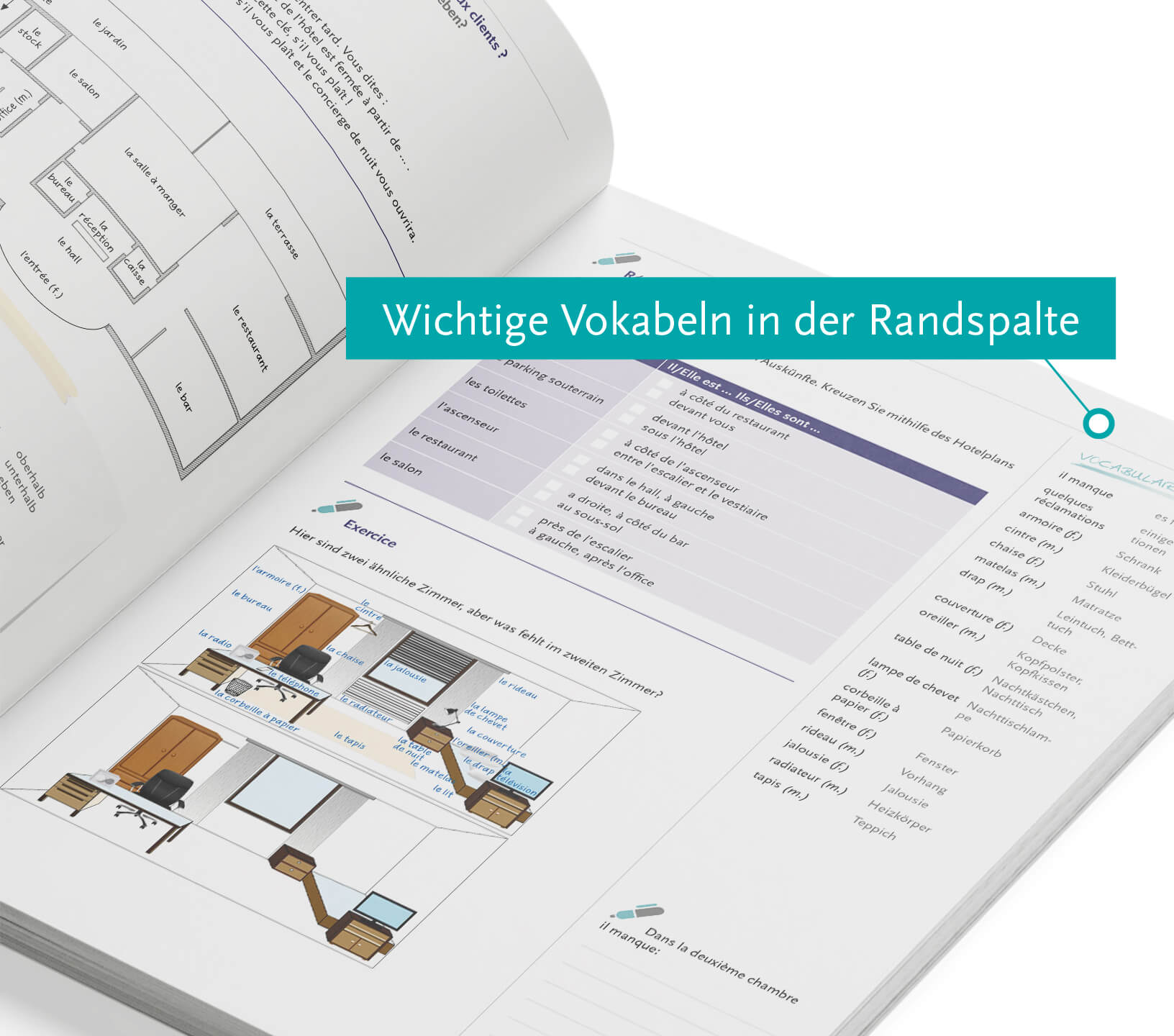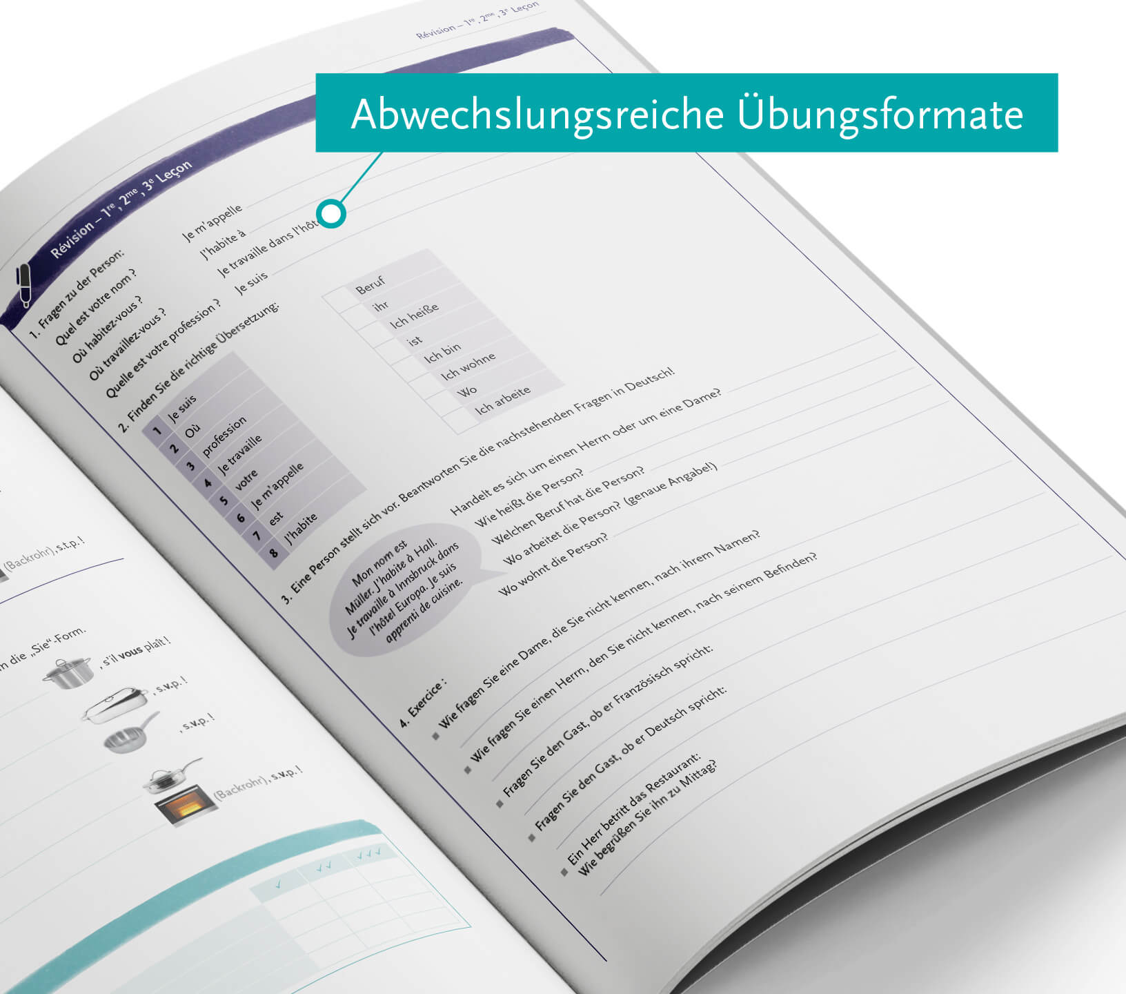 Das Hauptaugenmerk liegt auf dem Training der situationsadäquaten Kommunikation, wie sie in der Gastronomie, dem Tourismus und der Hotellerie täglich vorkommt. Die Grammatik wird in den Lektionen stets in dem für die Kommunikation erforderlichen Ausmaß erläutert und geübt.