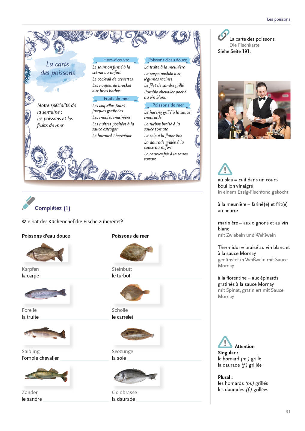Zudem finden sich im Anhang des Buches eine umfangreiche Vokabelliste, nützliche Phrasen und Beispiele für Speisenkarten und Rezepte.