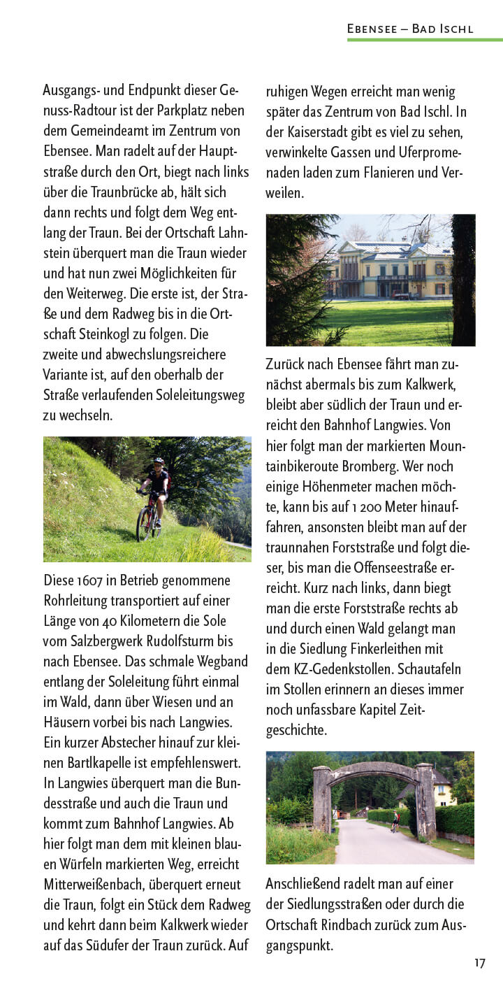 Bike & Hike: Ebensee – Gasselhöhle – Erlakogel, Gmunden – Ramsauer Alm – Katzenstein, Gosau – Iglmoosalm – Kalmberg, Hallstatt – Salzberg – Plassen, Molln – Ebenforstalm/Schaumbergalm – Trämpl, Molln – Grünburger Hütte – Schoberstein, Rosenau – Gowilalm – Kl. Pyhrgas, Schlögen – Naturlehrpfad – Untermühl
