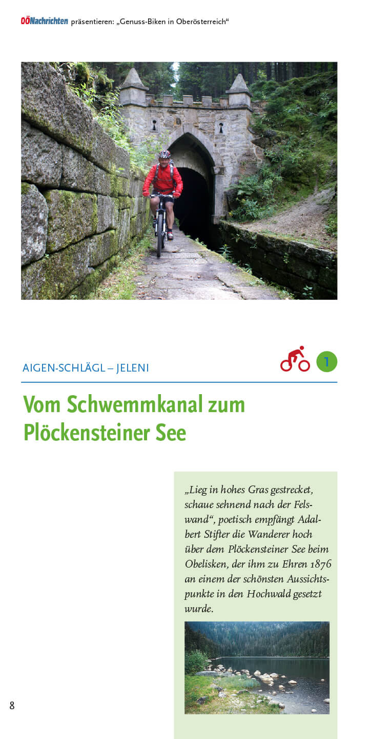 Radwandern: Aigen-Schlägl – Jeleni, Aigen-Schlägl – Linz, Ebensee – Bad Ischl, Franking – Tarsdorf, Kremsmünster – Molln, Linz – Admont, Linz – Enns, Linz – Gmunden, Linz – Peuerbach, Peuerbach – St. Agatha, Schärding – Obernberg, St. Oswald bei Haslach – Svatý Tomáš, Wilhering – Eferding