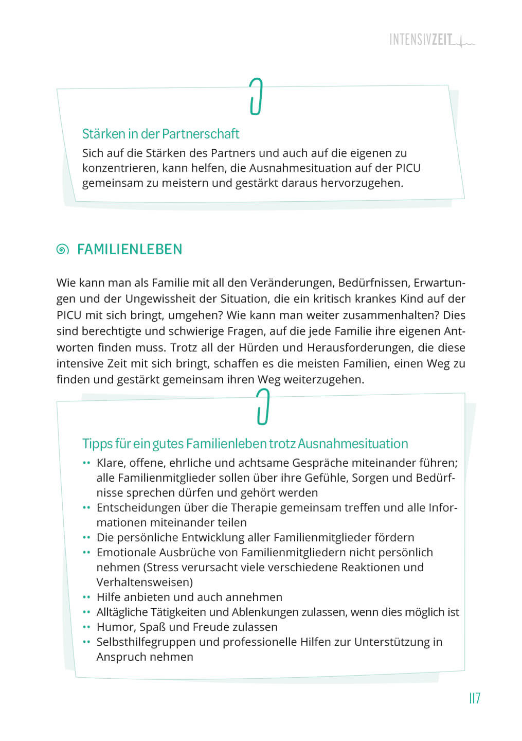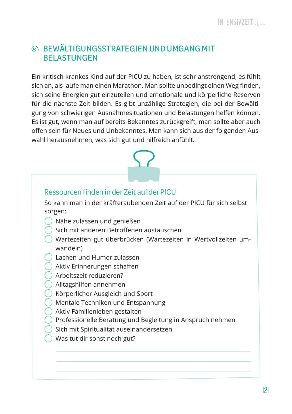 Hilfe zur Selbsthilfe für die Zeit auf der PICU