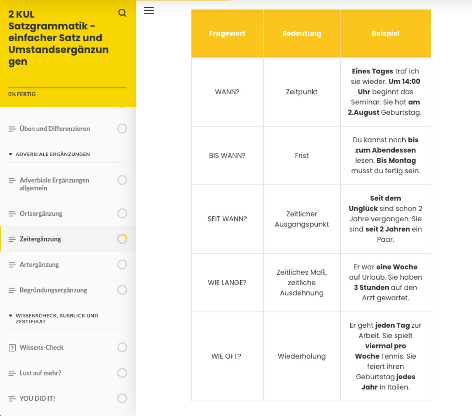 - KULe Satzgrammatik in 7 Modulen