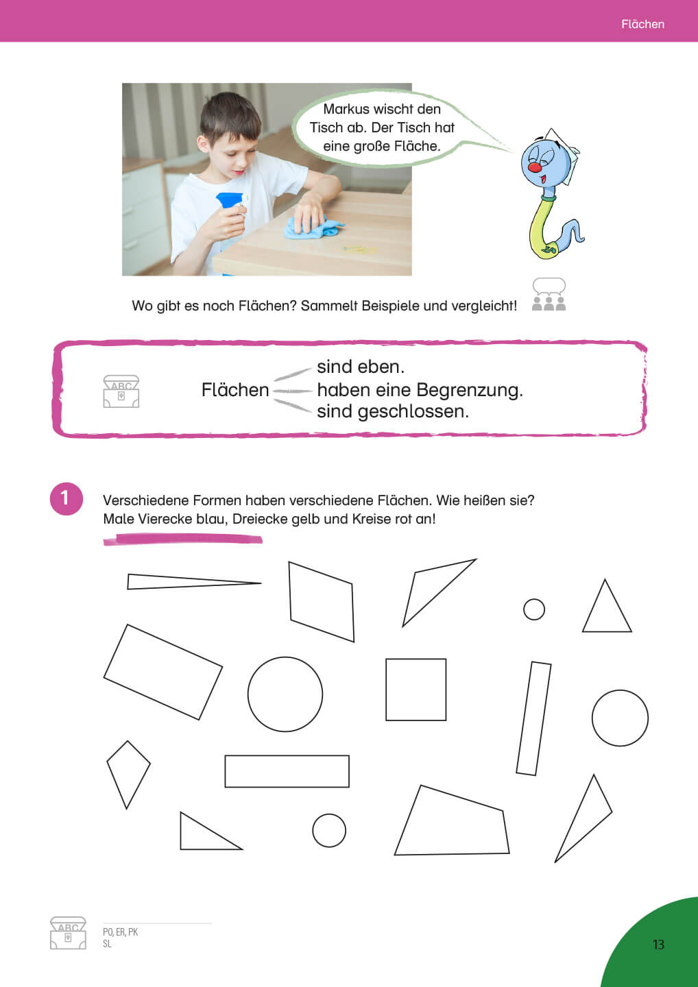 Flächen erkunden, Strecken messen, Körper kennenlernen, symmetrische Formen erkennen und die Orientierung im Raum