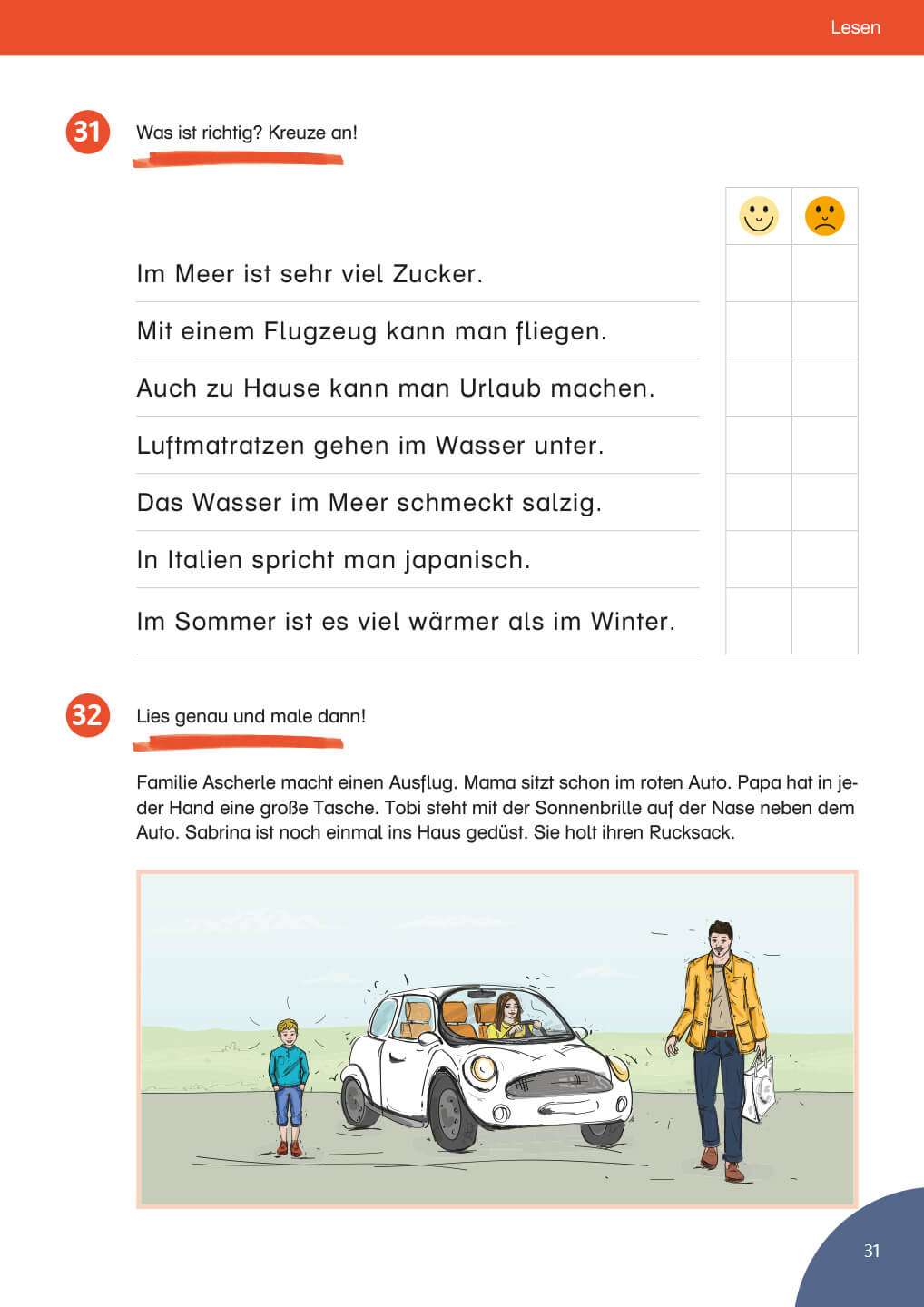 Abwechslungsreiche Übungen unterstützen bei der Wiederholung des Lehrstoffes der 1. Klasse.