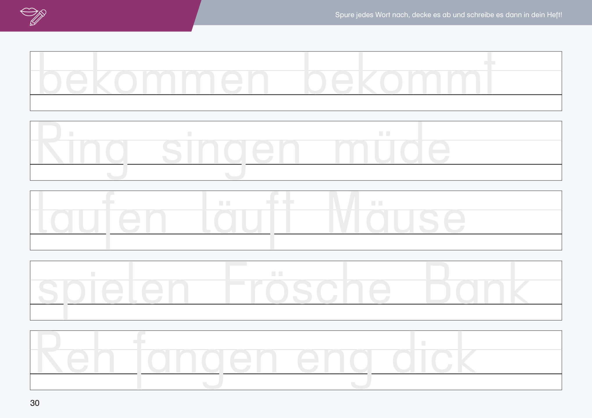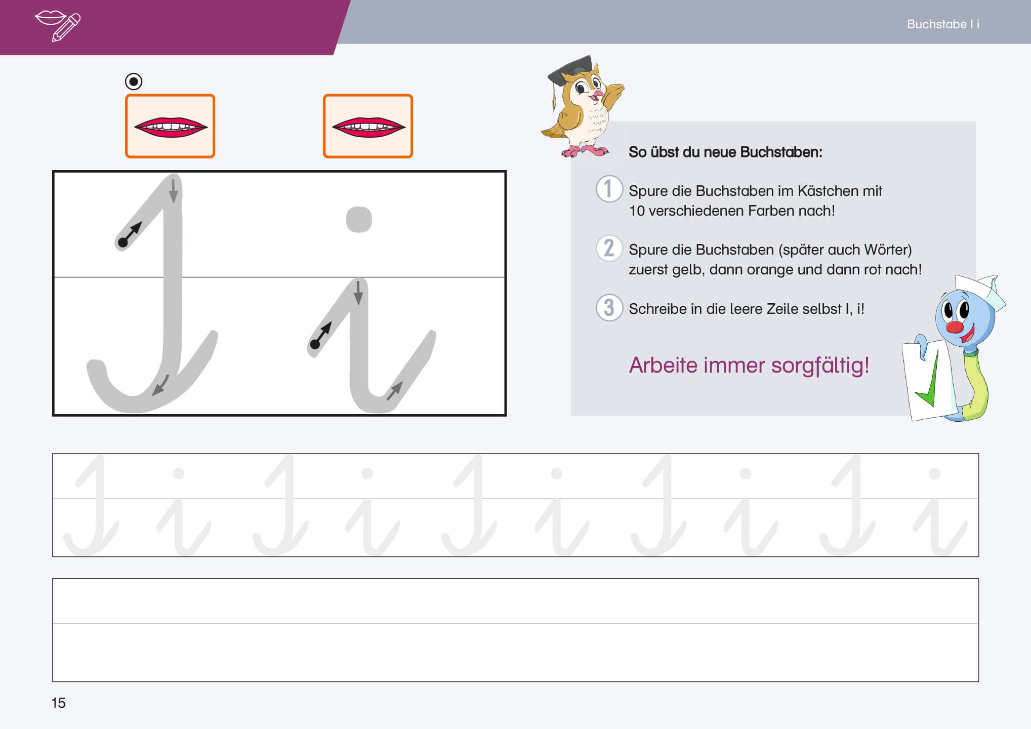 - Viele Schwungübungen und extragroße Zeilen erleichtern den Einstieg ins Schreiben
