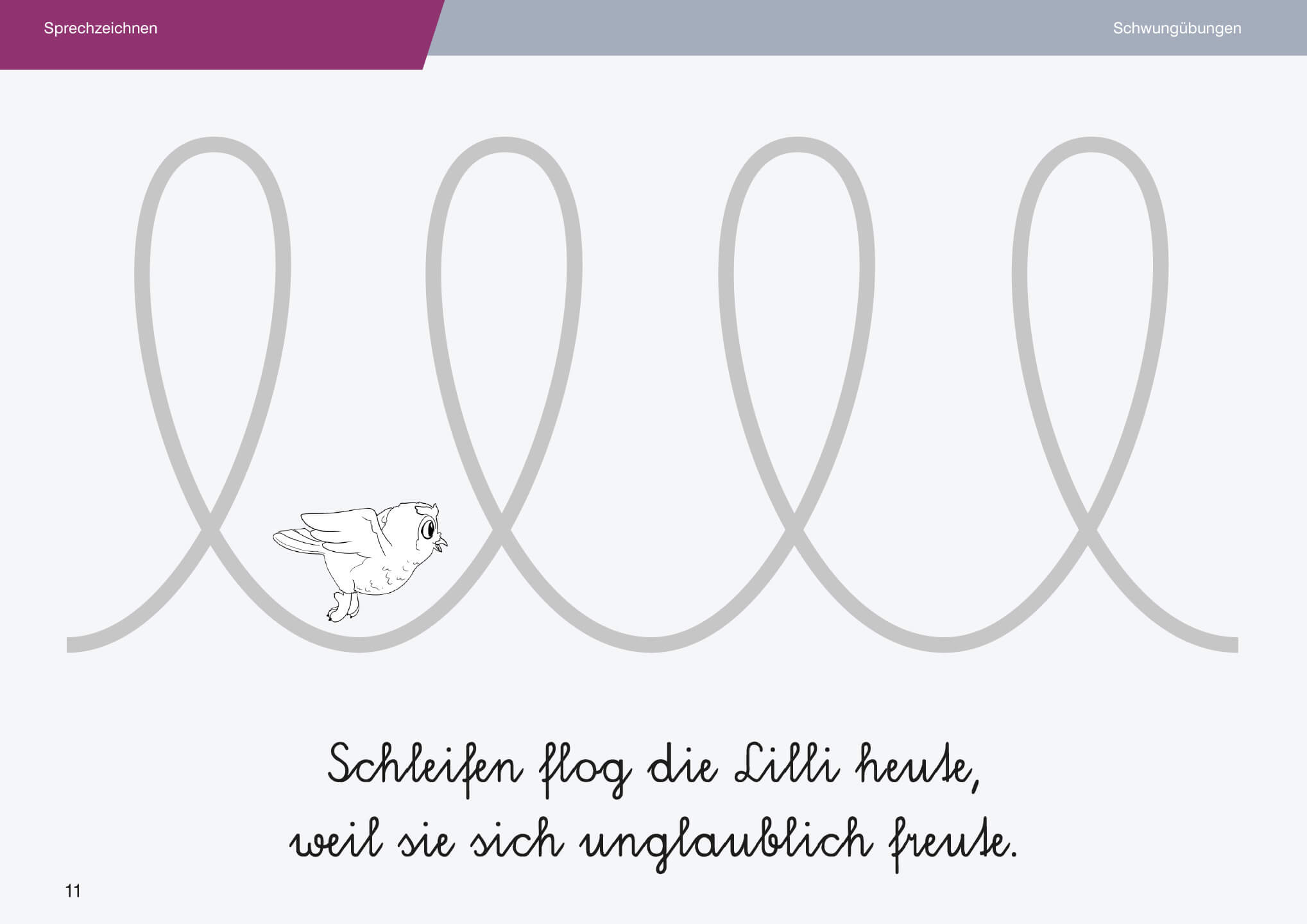 Schwungübungen mit begleitendem Sprechen fördern die Koordination von Mund und Hand – eine wesentliche Voraussetzung für flüssiges und entspanntes Schreiben.