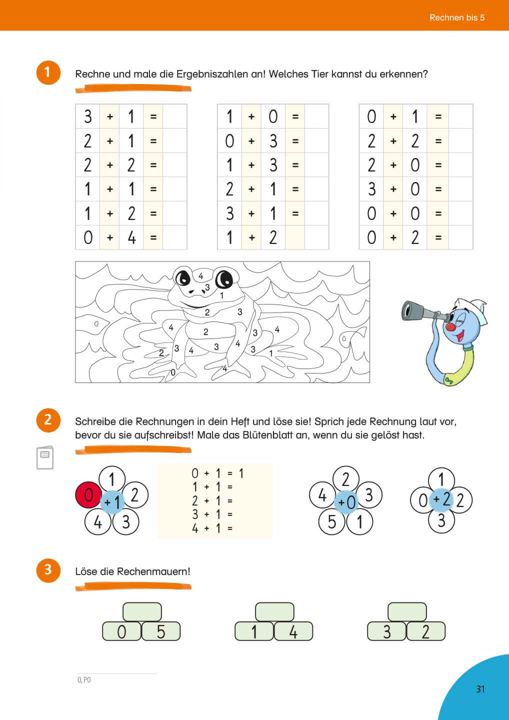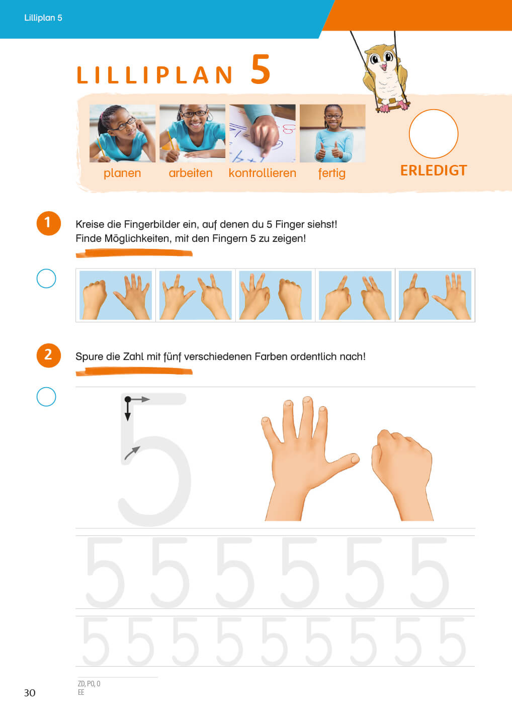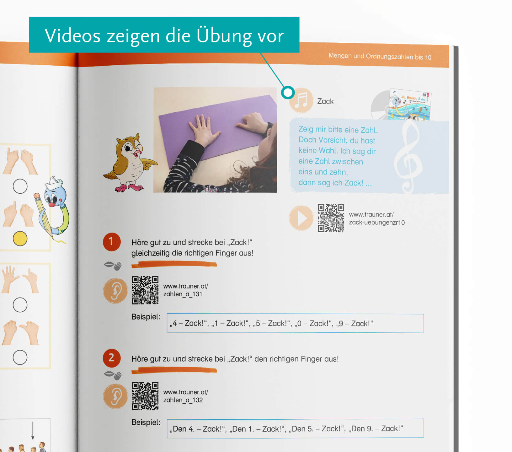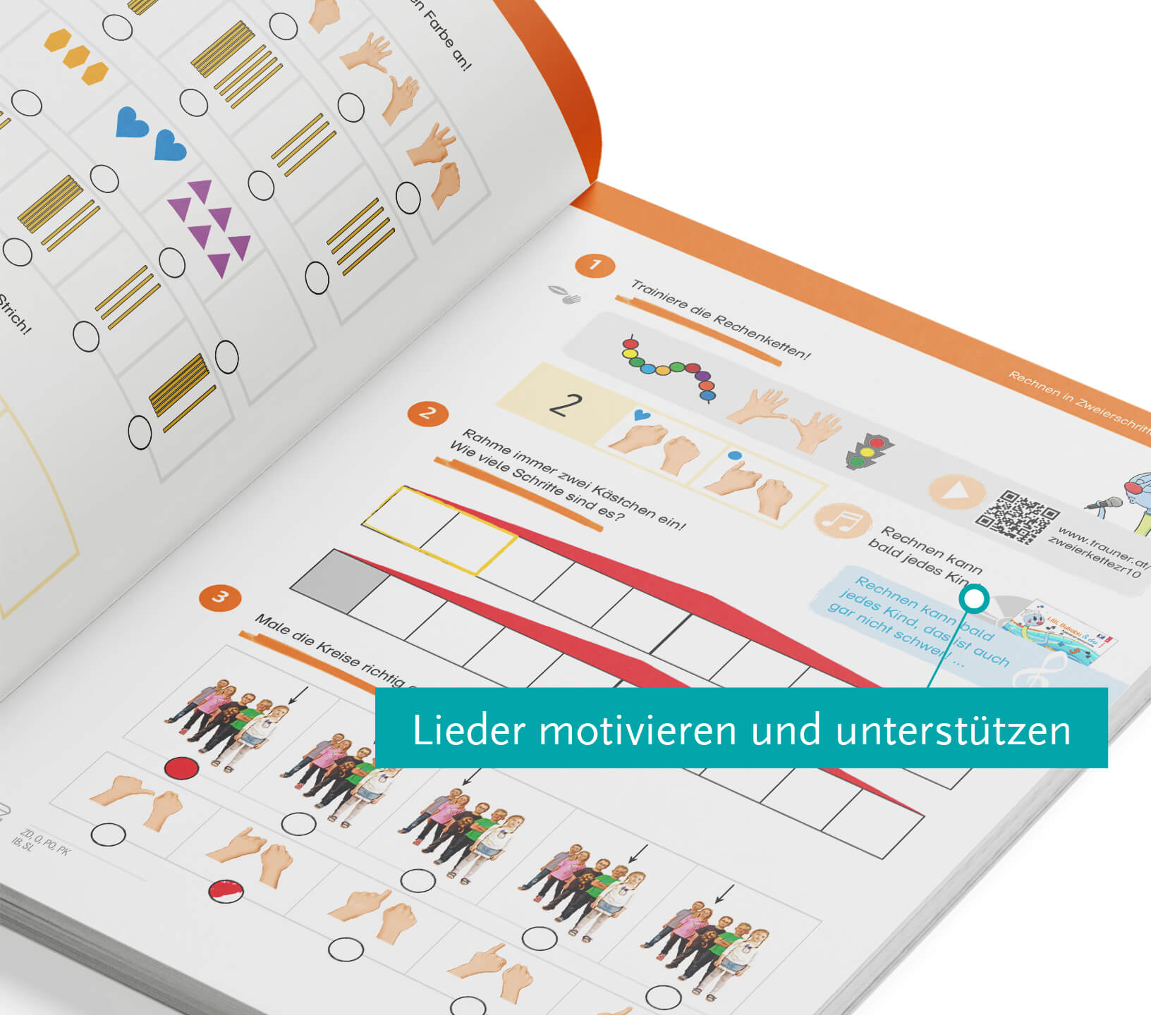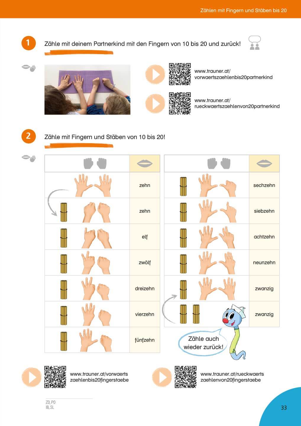 Der Einsatz der Finger zum Rechnen wird methodisch begleitet und unterstützt. Das Fingerzählen und später das Fingerrechnen werden zielgerichtet eingesetzt. Gezählt wird immer vom kleinen Finger der linken Hand weg in Lese- bzw. Schreibrichtung.