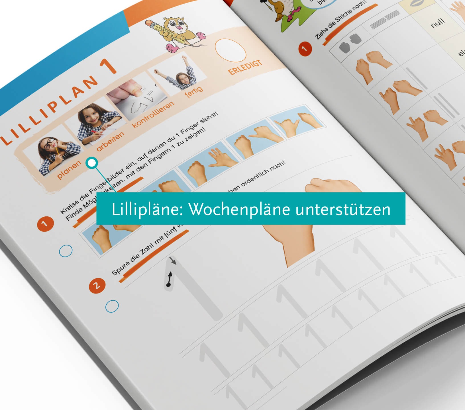 Gleichzeitiges Austrecken der Finger fördert die Simultanerfassung von Mengen. Das ist eine wichtige Vorläuferfertigkeit des Rechnens.