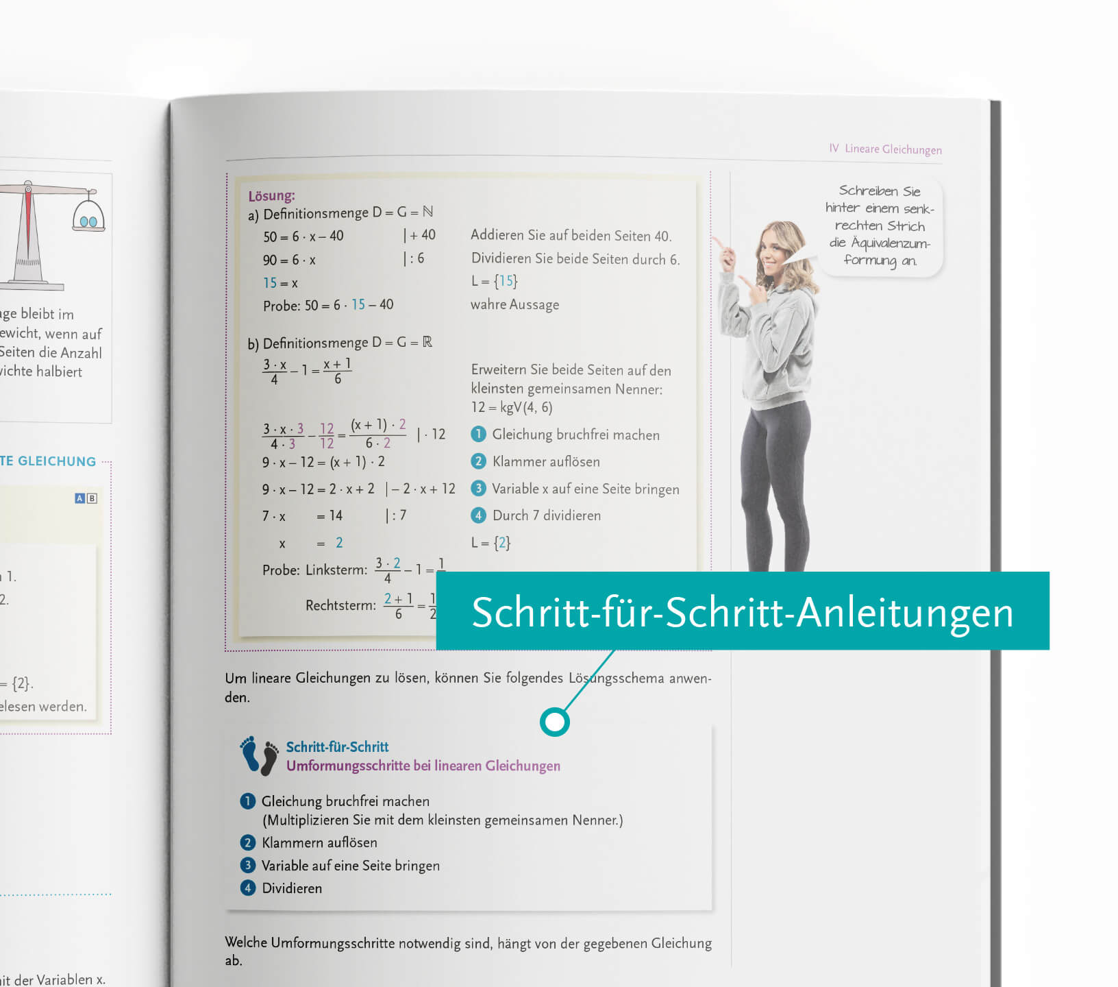Wir versprechen Ihnen, dass Sie KEINE Übungsaufgaben in unseren Schulbüchern finden, die nicht durch ein passendes Beispiel Schritt für Schritt erklärt werden.