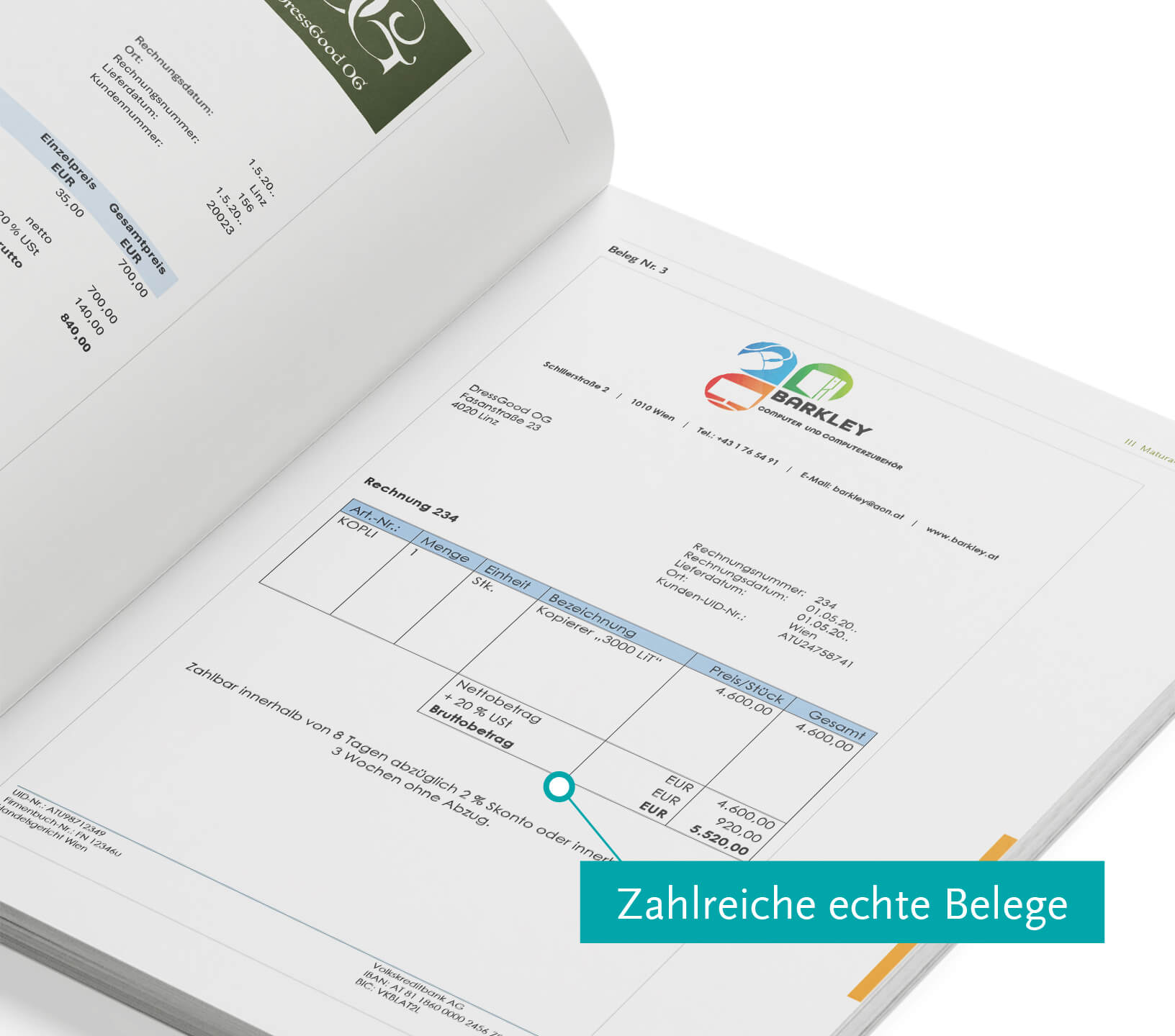 Praxisaufgaben mit Musterunternehmen aus verschiedenen Branchen, echte Belege und realistische Szenarien machen das Üben besonders lebendig. Kommentierte Lösungen helfen, Aufgaben richtig zu verstehen und selbstständig zu bearbeiten.