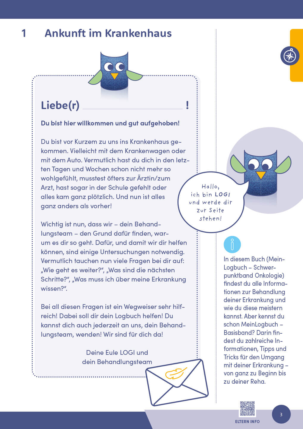 „MeinLogbuch“ richtet sich an alle Kinder zwischen 6 und 14 Jahren, die aufgrund einer chronischen Erkrankung im Krankenhaus behandelt werden. Der „Schwerpunktband Onkologie“ erweitert „MeinLogbuch – Basisband“ um behandlungsspezifische Auseinandersetzungen bei einer onkologischen Erkrankung.