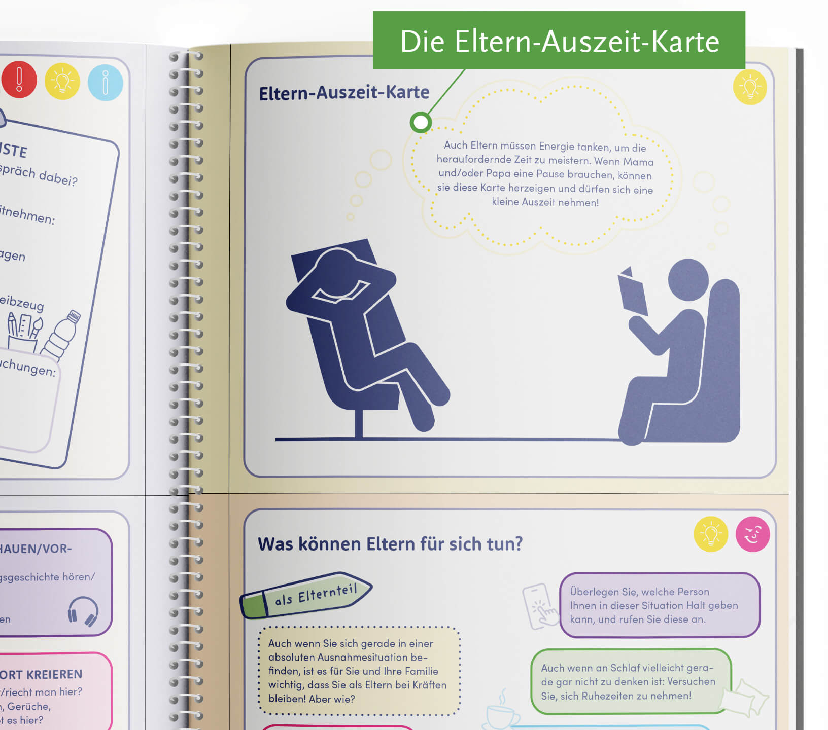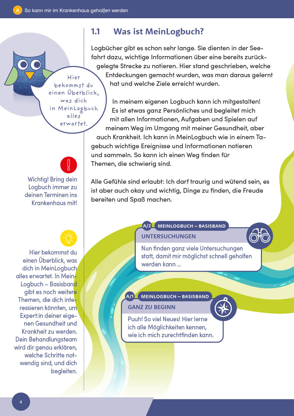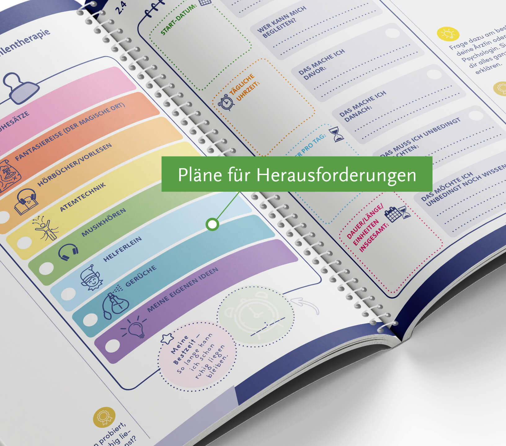 Durch kreative Spiele, Übungen, Bastelideen und informative Gespräche erhalten Kinder, Jugendliche und ihre Familien einen umfassenden Überblick über aktuelle gesundheits- und krankheitsbezogene Themen. Gemeinsam mit dem psychosozialen Team werden Strategien entwickelt, um mit den Herausforderungen des Krankenhausalltags besser umgehen zu können. Diese wissenschaftlich fundierten Mitmachbücher bieten darüber hinaus spezifische Informationen für Angehörige im begleitenden Online-Paket.