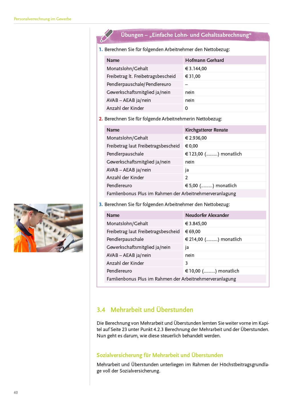 Um immer auf dem aktuellsten Stand zu sein, wurde die Personalverrechnung aus dem Band „Angewandte Wirtschaftslehre für das Gewerbe“ ausgegliedert und wird in diesem Ergänzungsmodul angeboten. Der Band erscheint immer zu Jahresbeginn mit den aktuellen Änderungen in der Personalverrechnung.